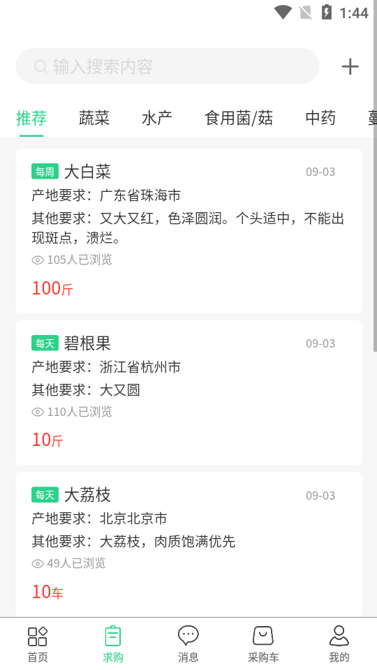 1、供需匹配:用户可自行发布农产品的供应(需求)信息,