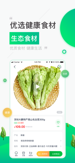 2、优选健康的食材,用户购买,享用,可以更加健康;