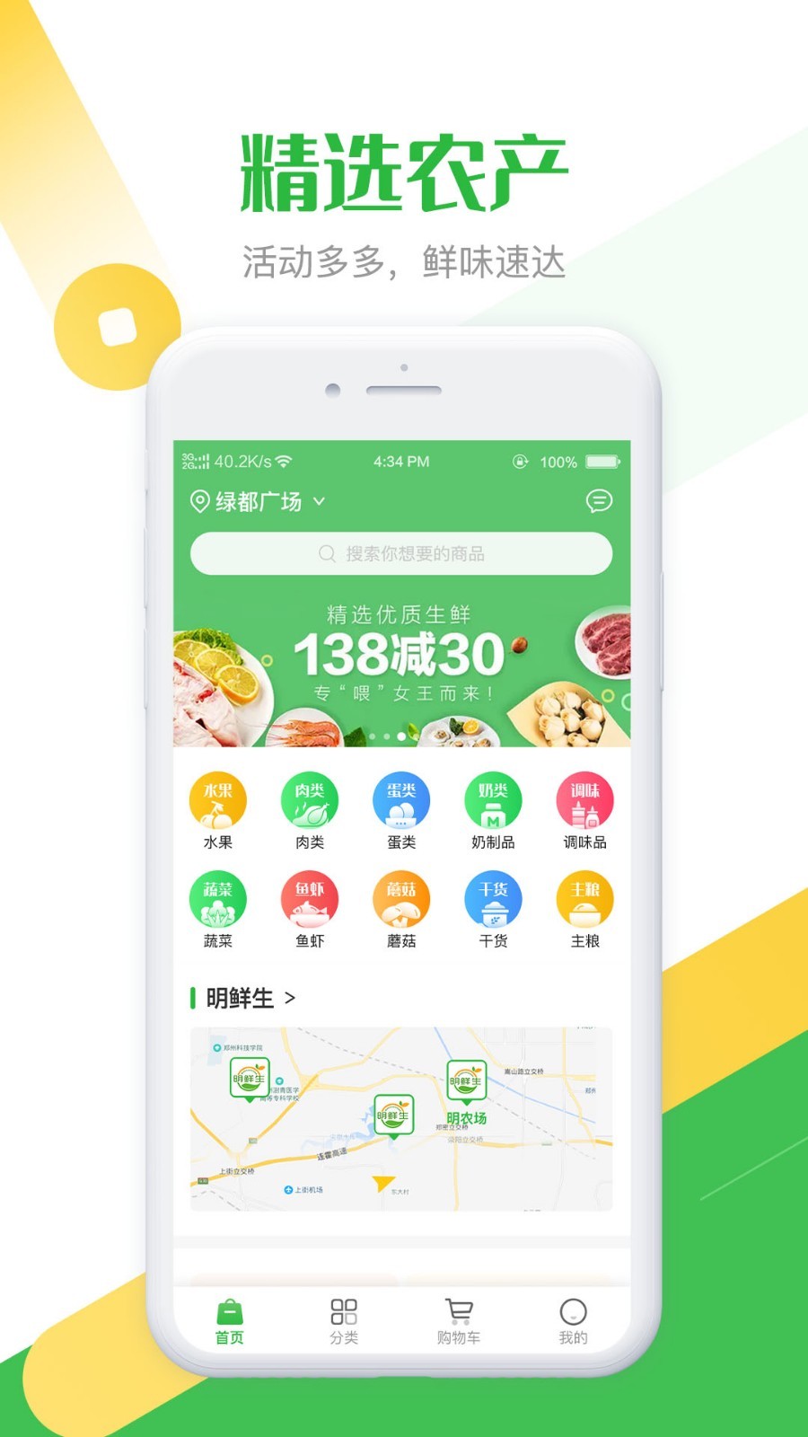 1、所有的生鲜商品都会详细分类,便于用户去选择购买;