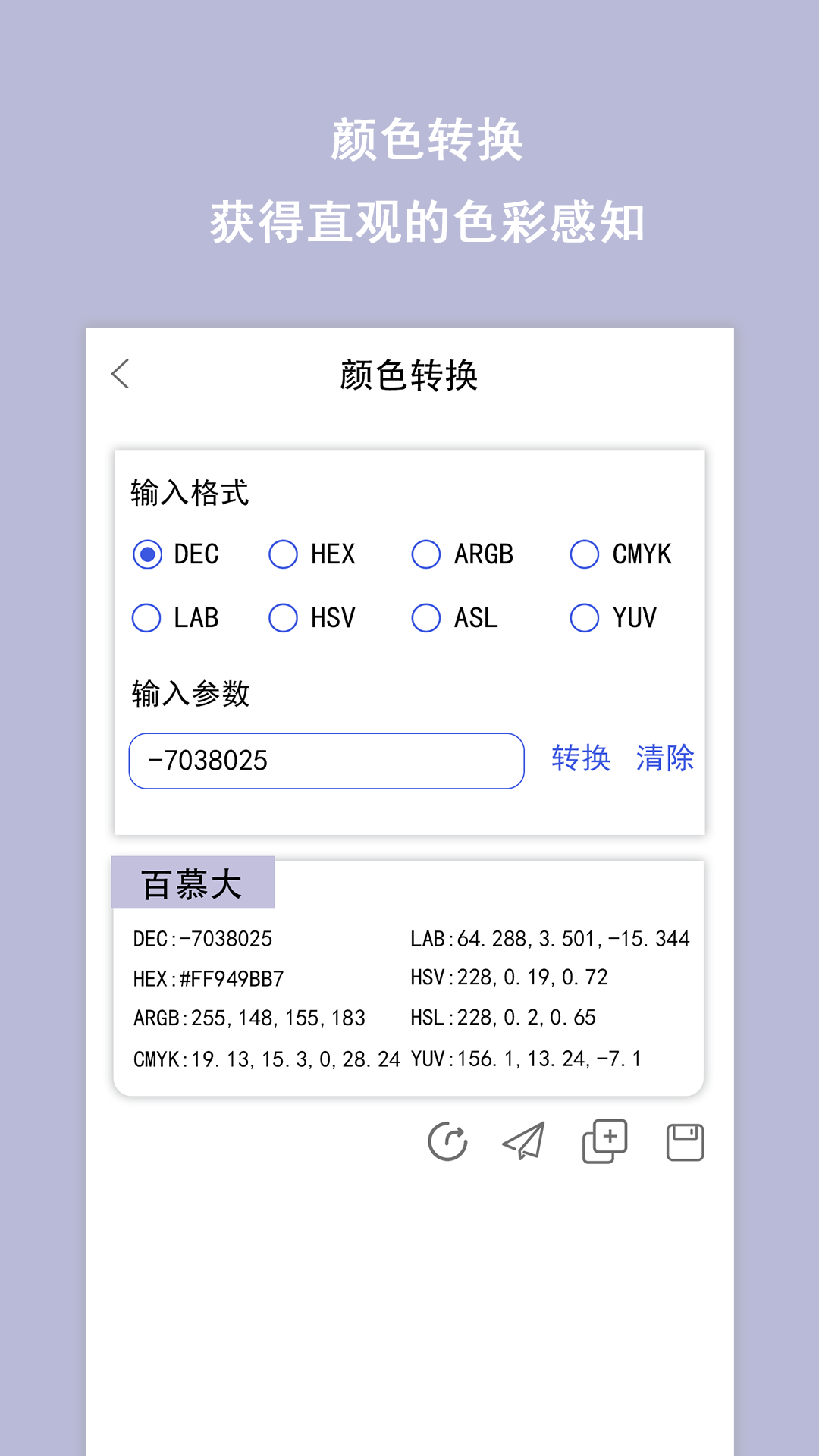 3、记录分享配色,多种带图分享模式留住美好配色回忆。