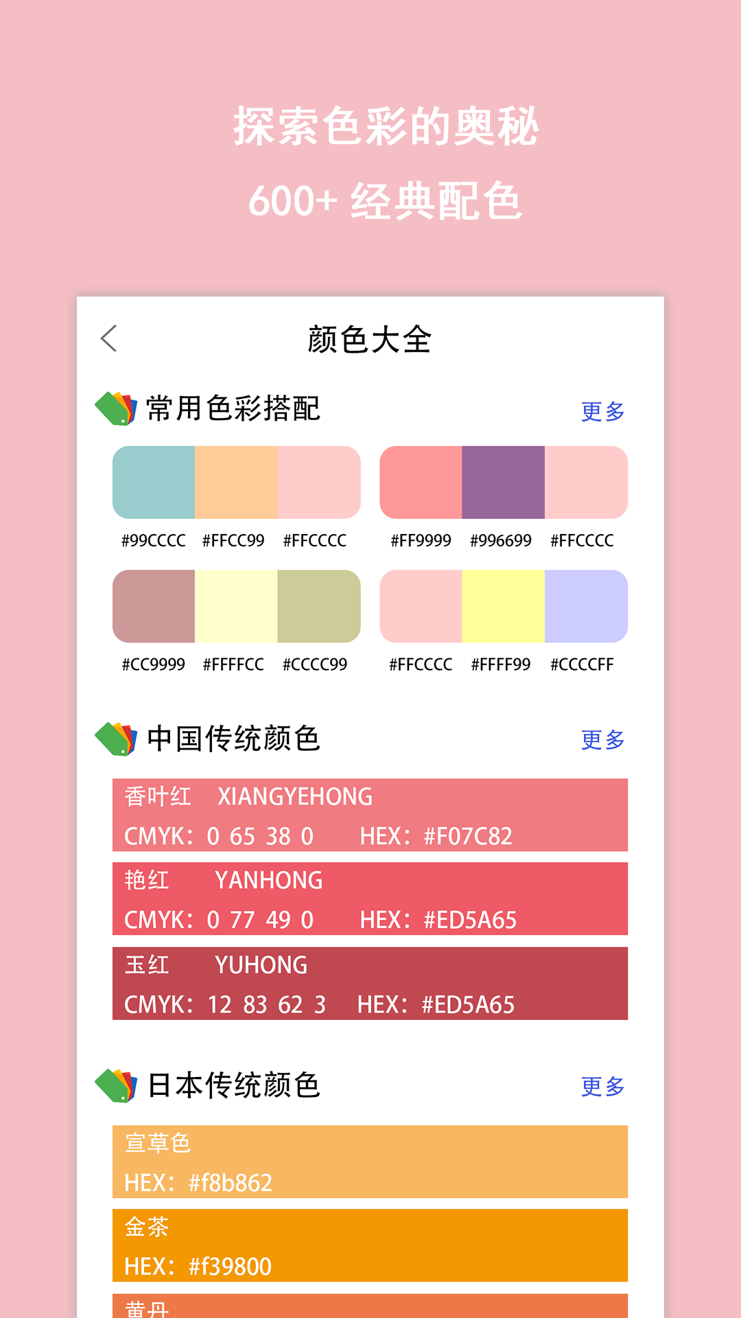 2、探索色彩的奥秘,600+经典配色,用户便捷选择;