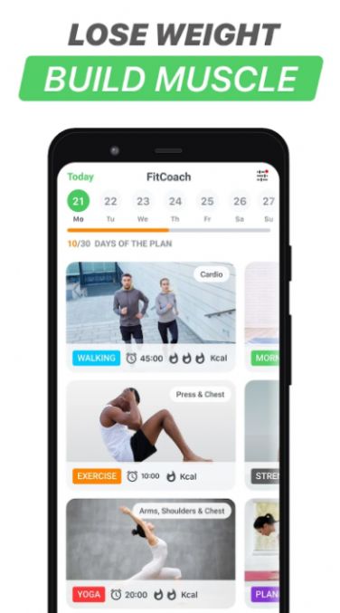 2、FitCoach offers a variety of home fitness workouts to help you lose weight, taking your goals into account and creating the most effective home fitness plan for weight loss.