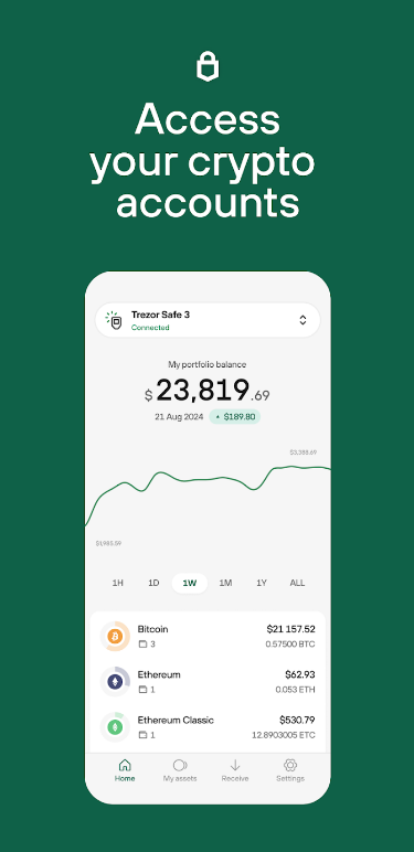 2、Mobile Access: Users can stay up to date with their favorite coins anytime, anywhere, even without their Trezor device connected, using the portfolio tracker feature. This enables users to monitor their crypto holdings and track performance on the go through their Android phone.