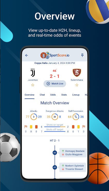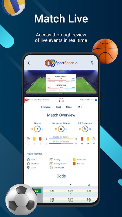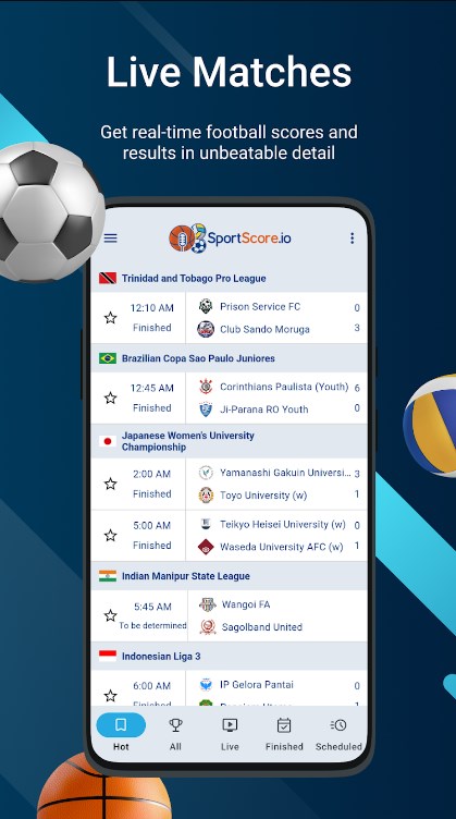 1. Real time scores: Real time updates of Live match scores for major leagues and tournaments around the world, ensuring that users do not miss any critical moments.