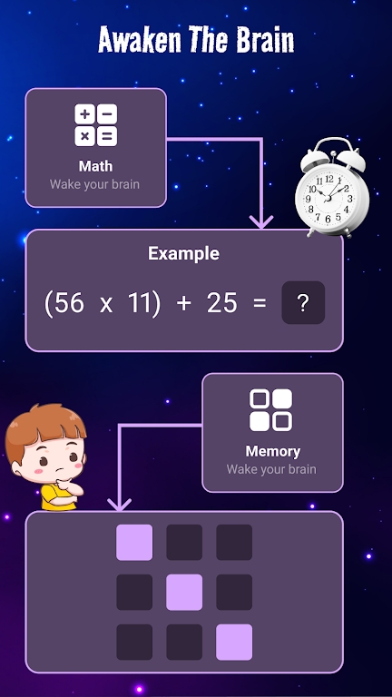 1.Interactive Challenges: Unlike classic alarm clocks, the Simple Alarm Clock app demands the user to solve Puzzles or answer fun quizzes to silence the alarm. This interactive feature ensures attentiveness and helps you fully awaken before turning off the alarm.