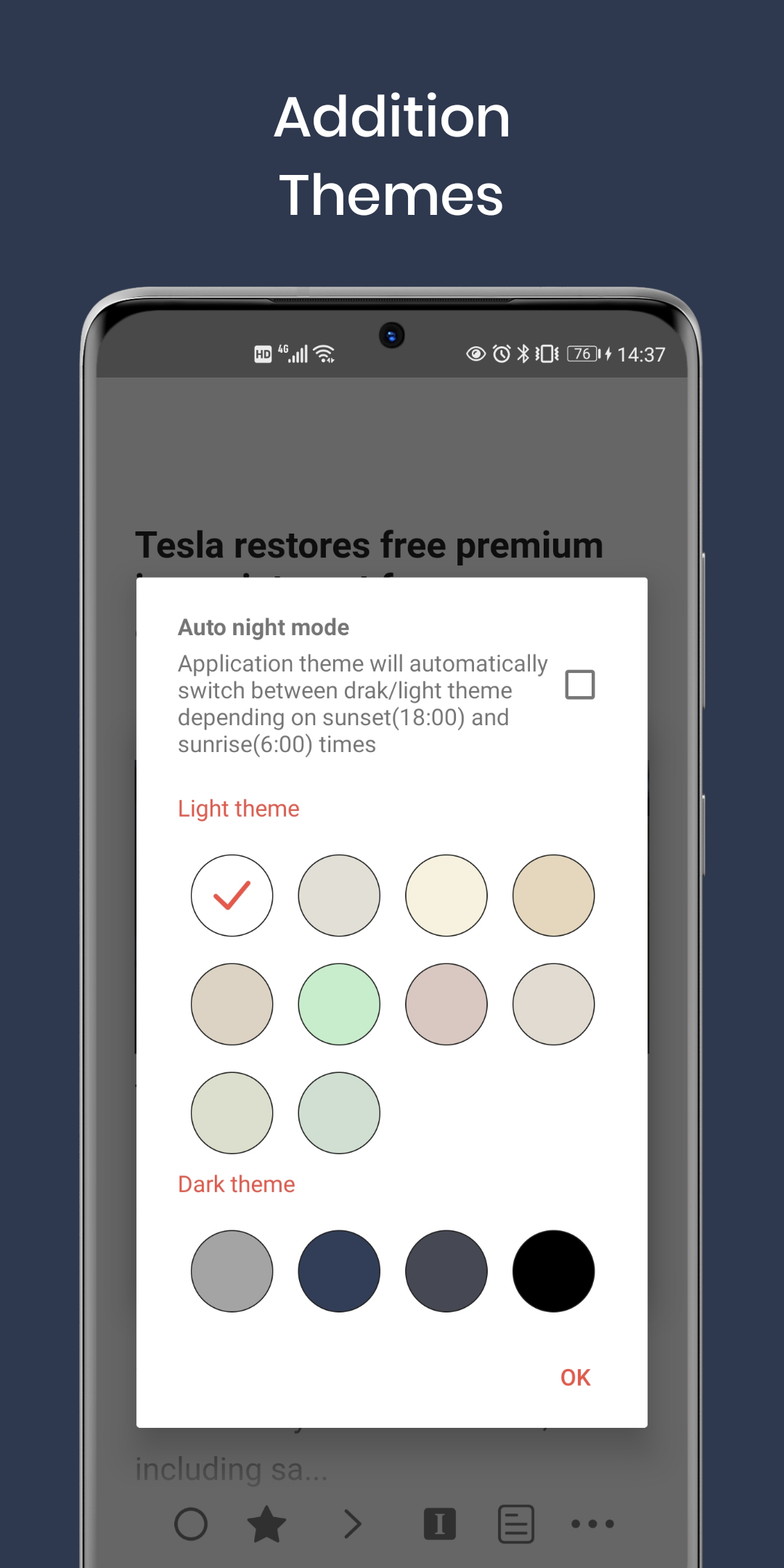 • Customizable light, dark, and AMOLED themes, plus auto-dark mode.
