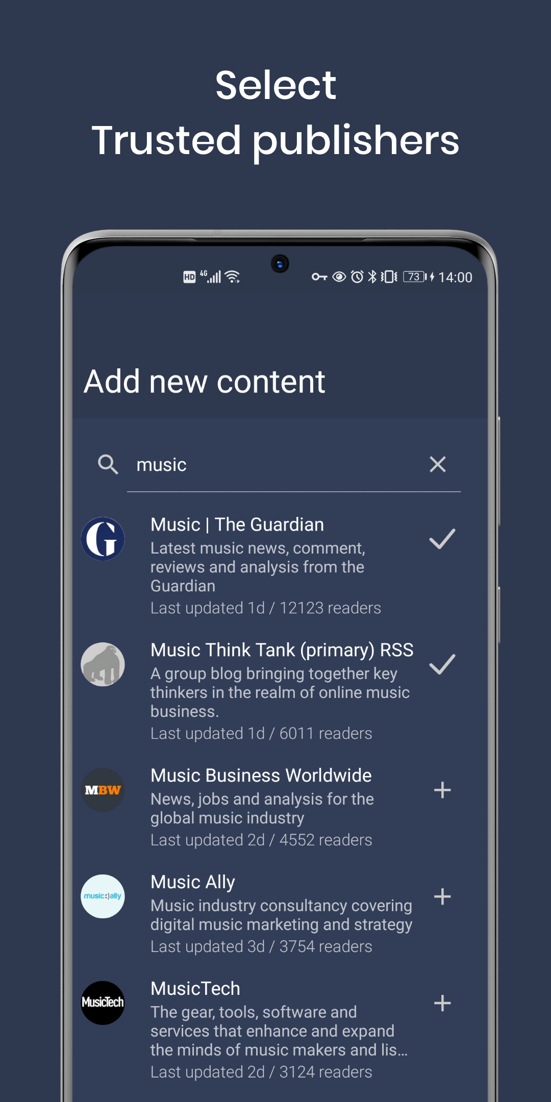 • Simple search and addition of new feeds by entering a keyword to find various options.