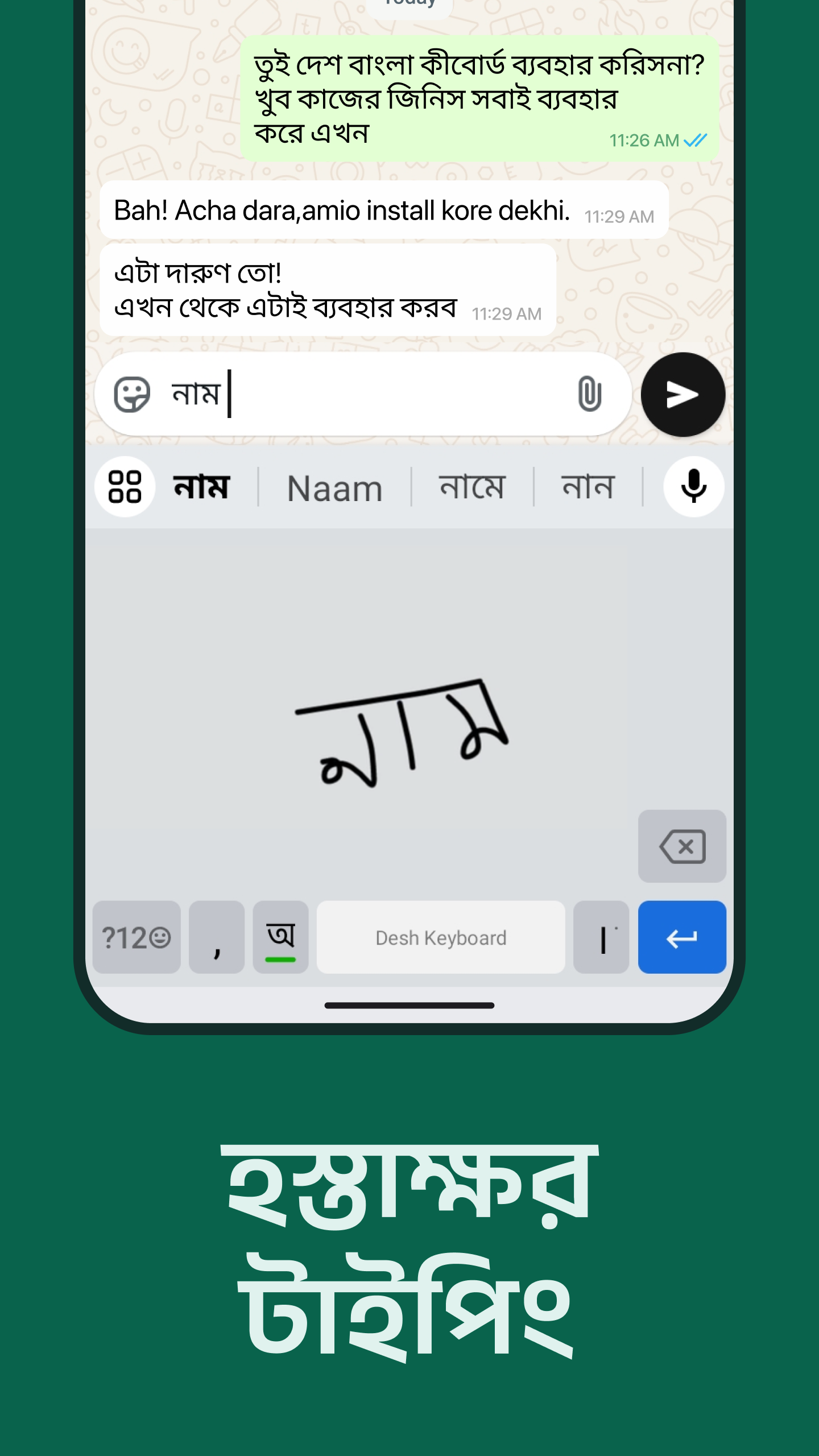 - Handwriting: Write Bangla letters manually via handwriting mode.