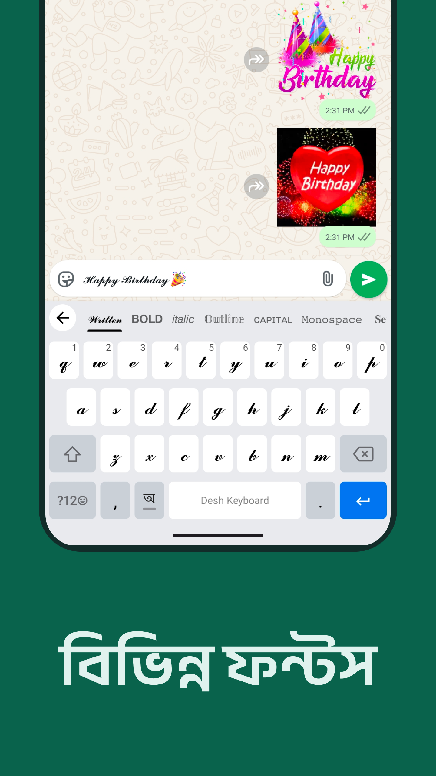 - Desh Bangla Keyboard provides a cherished English-to-Bangla typing experience with Transliteration.