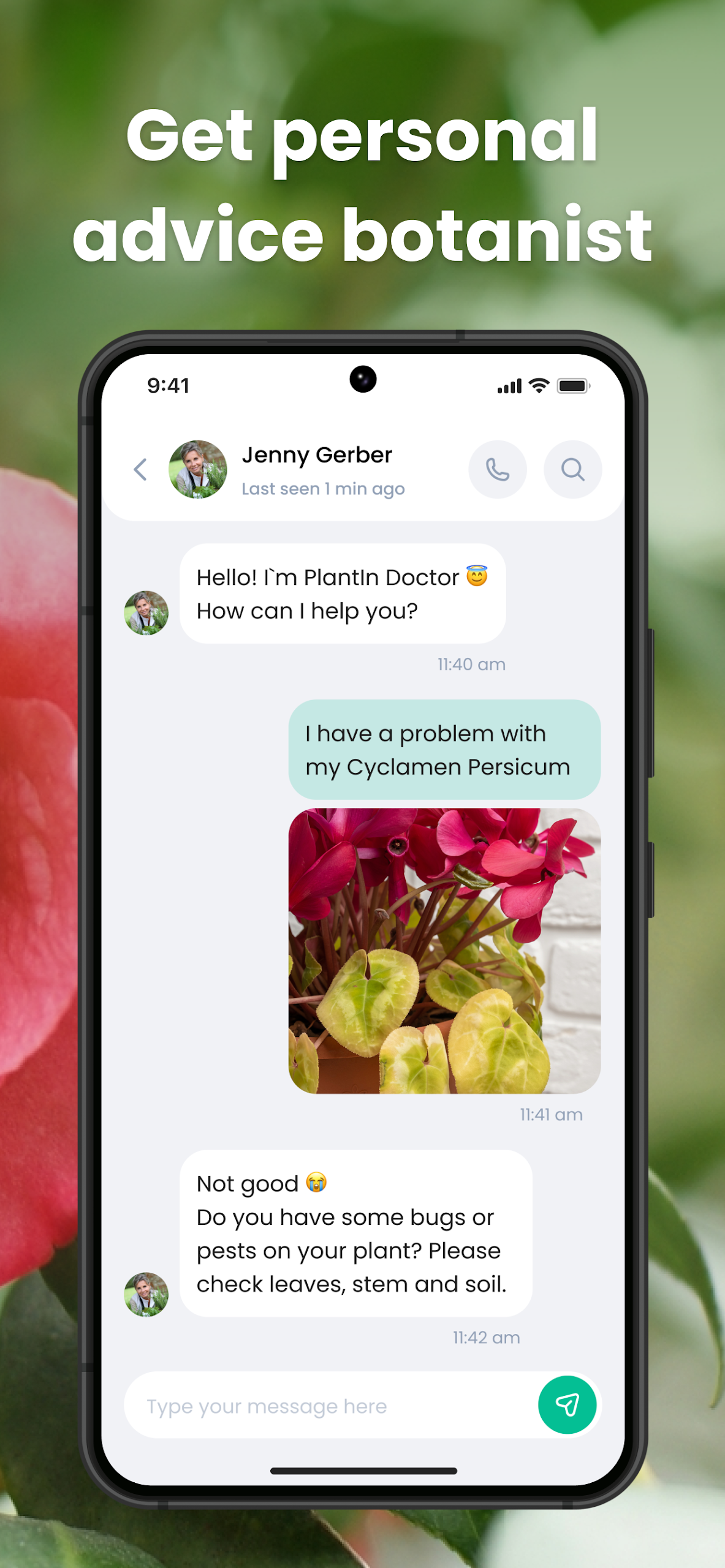 🪴Botanist Help: Think of PlantIn as your go-to plant doctor who understands exactly what’s wrong and is ready to assist! Engage with our experts; they’ll answer all your inquiries and prepare a personalized, detailed DIY treatment regimen tailored just for you.