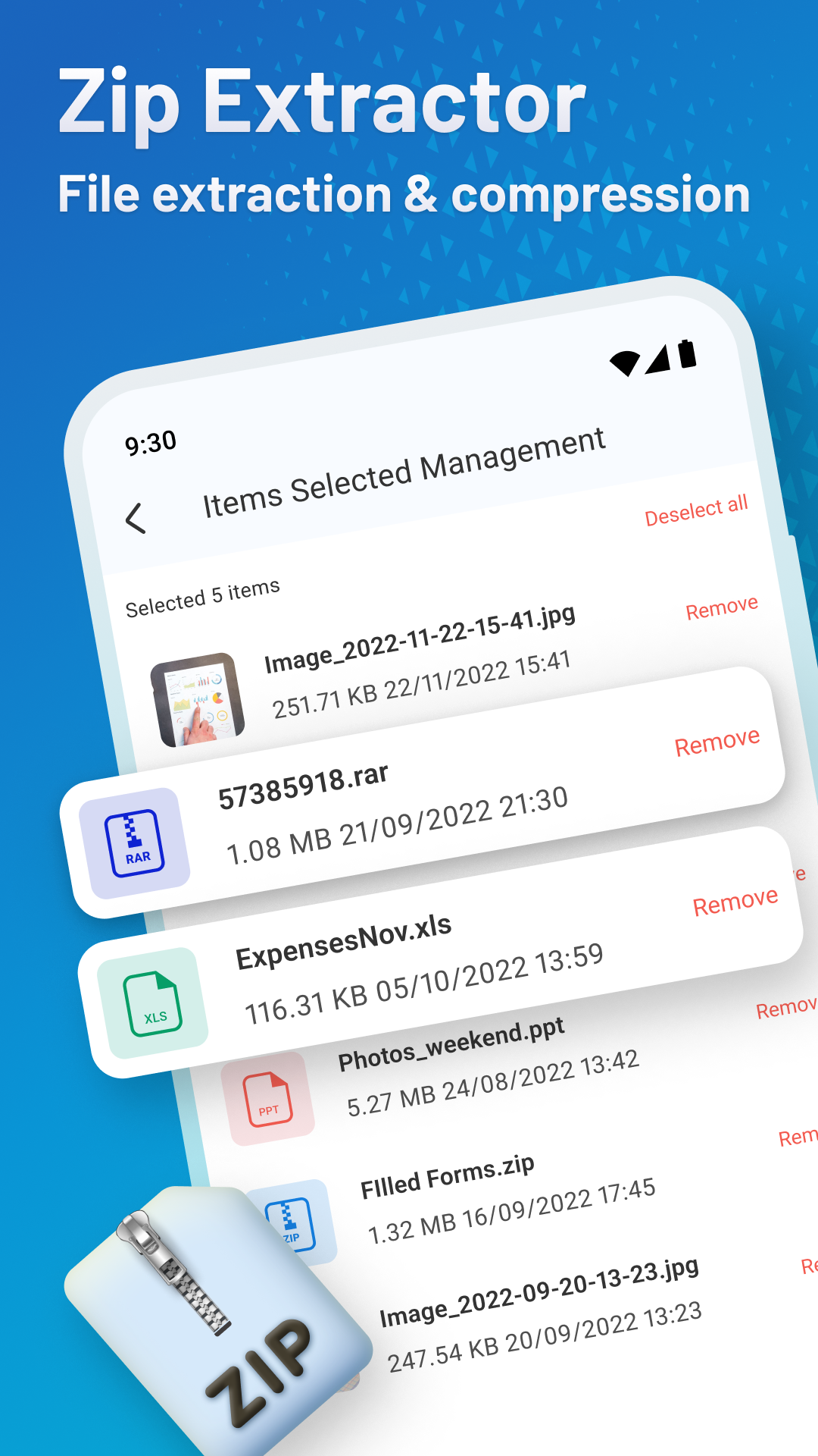 When it comes to navigating your files, nothing surpasses the simpliCity and effectiveness that Zip Extractor offers. A key feature of the app is its ability to zip a vast amount of data and unzip it seamlessly with one action. Due to its impressive high compression rate, faster file transfers and uploads are achievable without compromising on content quality. With its user-friendly interface and compatibility across numerous file formats such as DOCX, XLSX, PDF, PNG, MP3, and beyond, it's truly a comprehensive solution for all your compression needs.