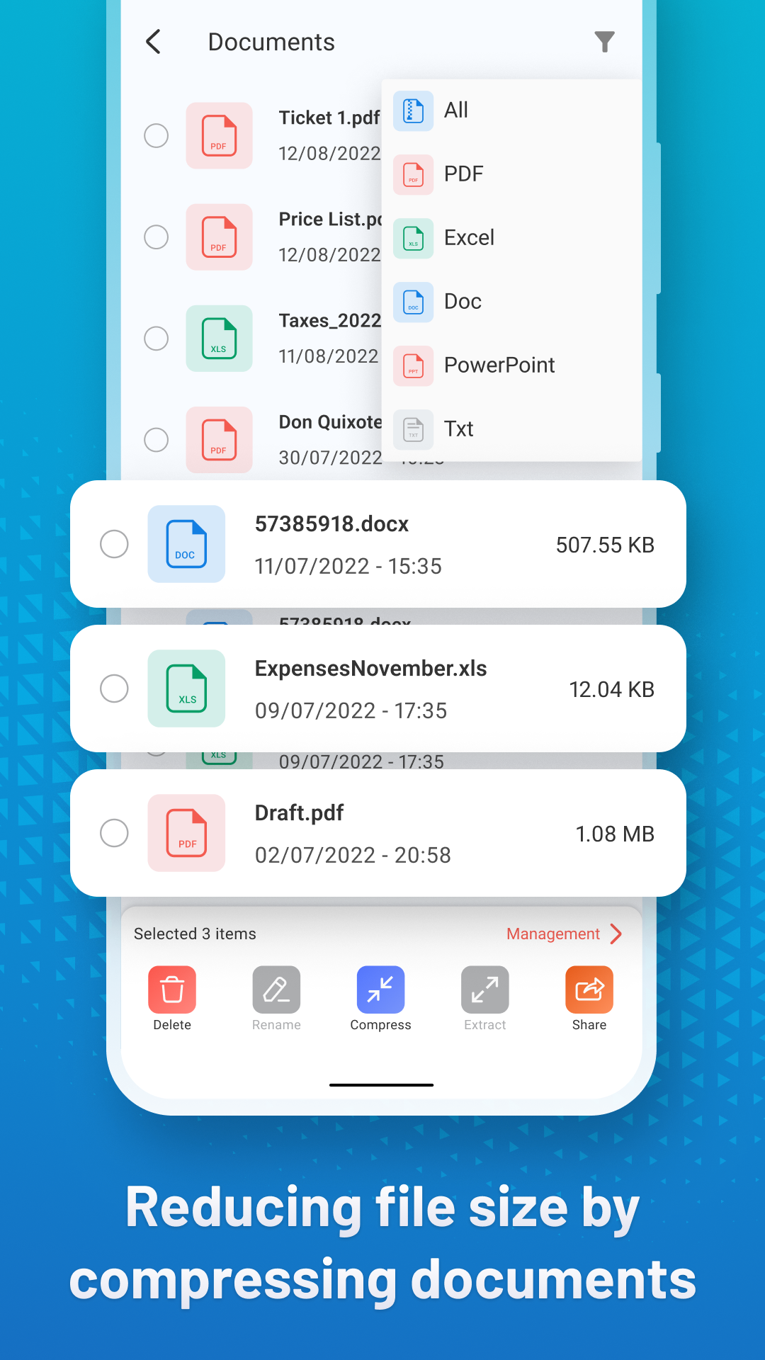Quick sharing: Compression acts like gathering various files and neatly packing them together. This Action promotes the convenient and rapid sending of multiple documents all at once, making it an efficient option.
