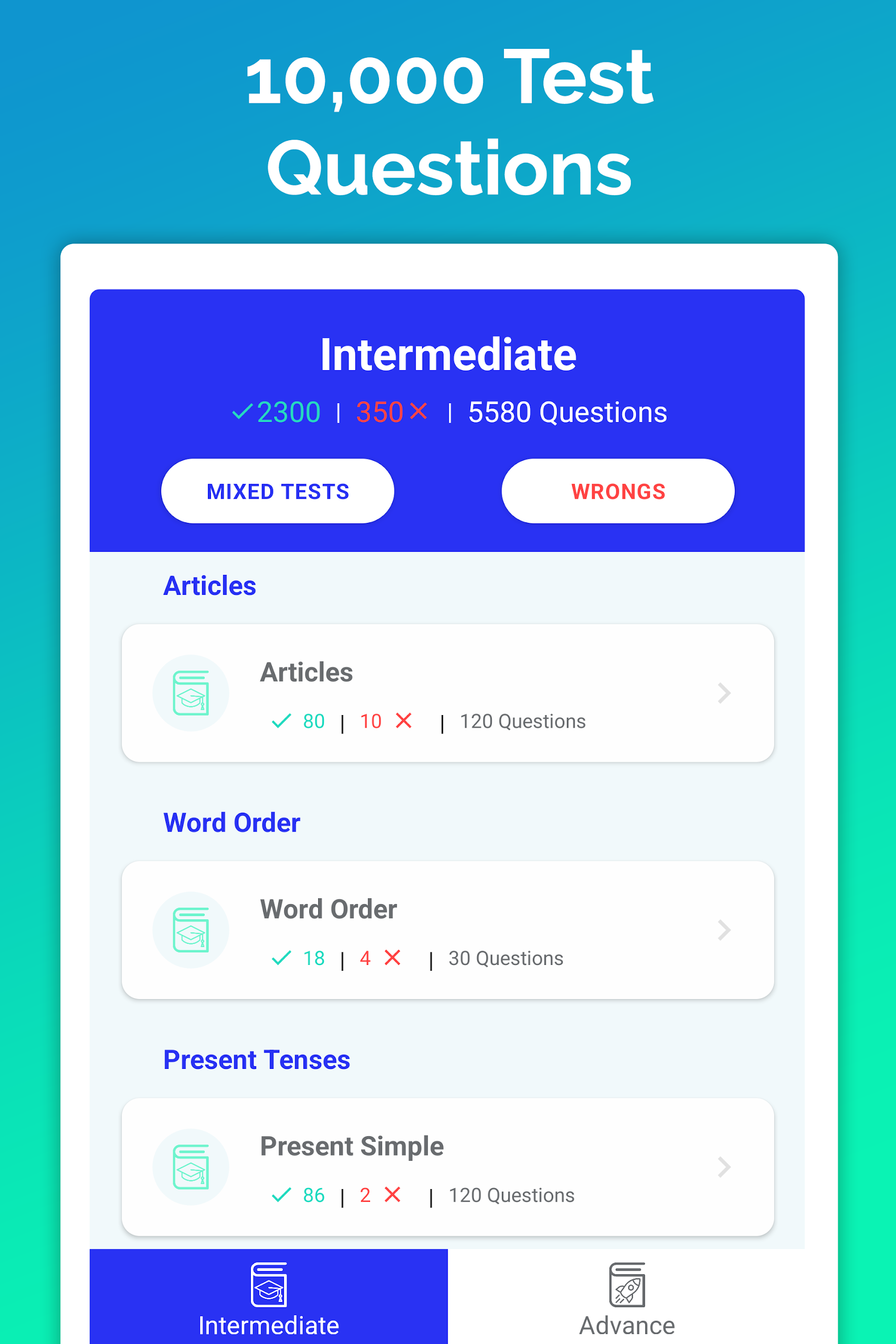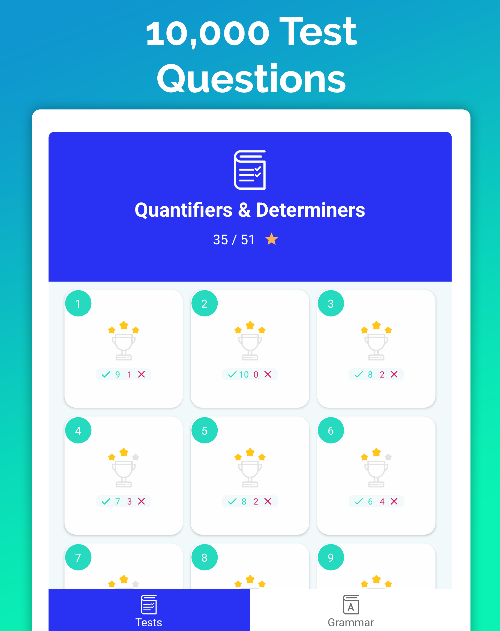 ● 10,000 grammar tests