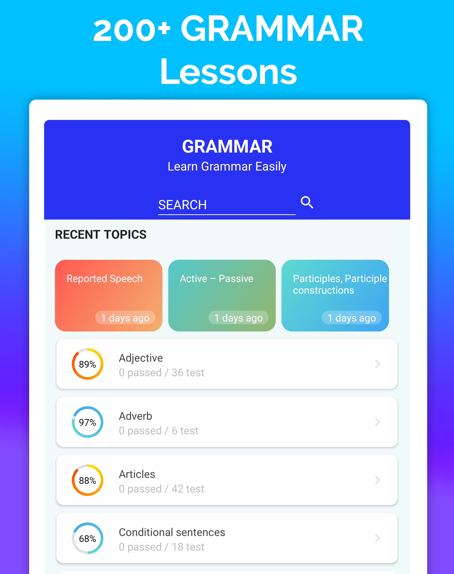 ● 200+ grammar lessons