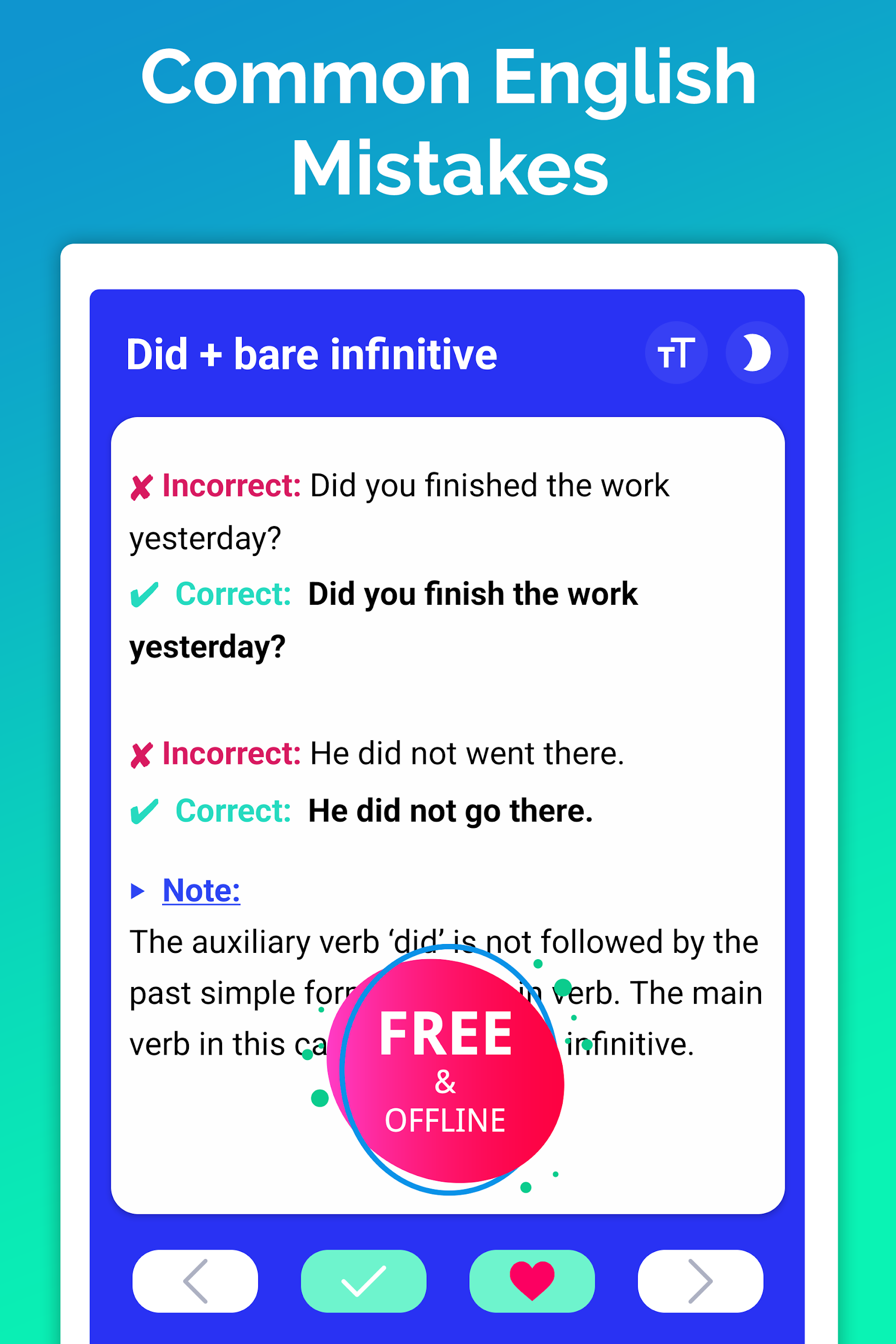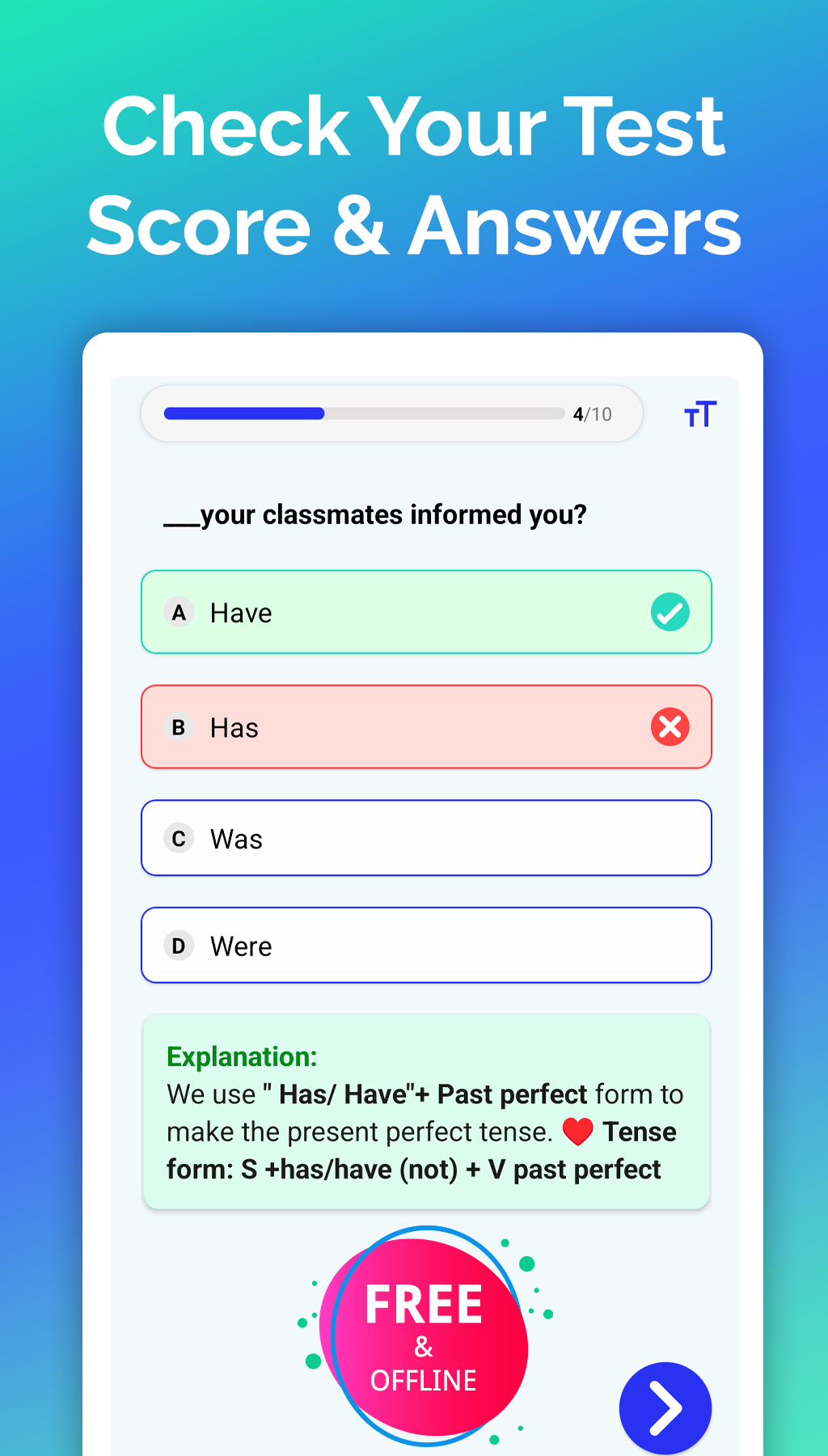 The English Grammar app facilitates significant improvements in your grammar skills, adequately preparing you for grammar examinations or simply enhancing your writing and speaking capabilities efficiently. With the English Grammar app, you can study absolutely FREE through over 200 grammar lessons and 10,000 practice tests. Even better, you can readily enjoy these resources wherever you are after downloading our app.