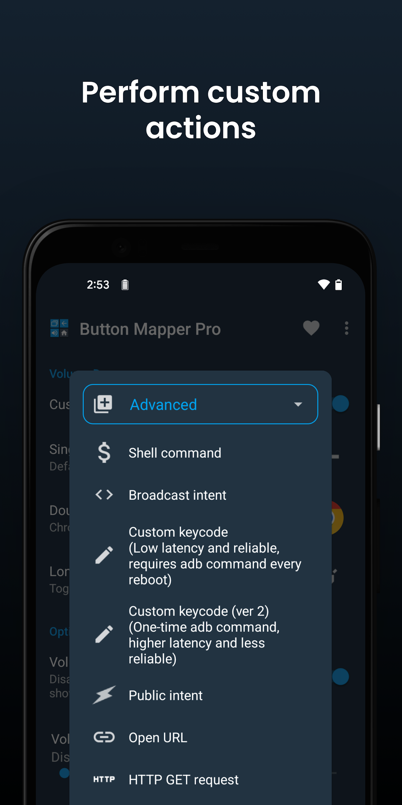 - Custom buttons: add additional buttons such as active, mute, etc., across devices like phones, headphones, gamepads, Android TVs, and various peripherals.