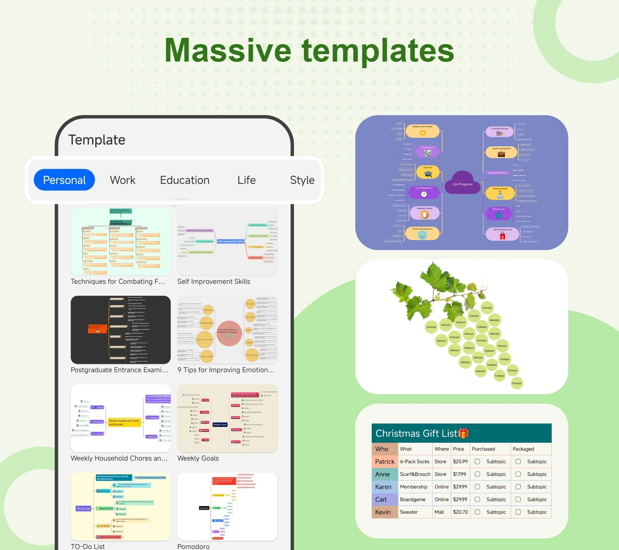 From concise meeting shorthand and personalized resumes to engaging creative writing and effective goal setting, the applications of Nice Mind Map are not only numerous but also extremely varied. Whether you're Organizing a presentation, collecting inspiration, or drafting a simple shopping list, this application is fully equipped to meet your needs. It truly serves as the Swiss Army knife of mind mapping tools!