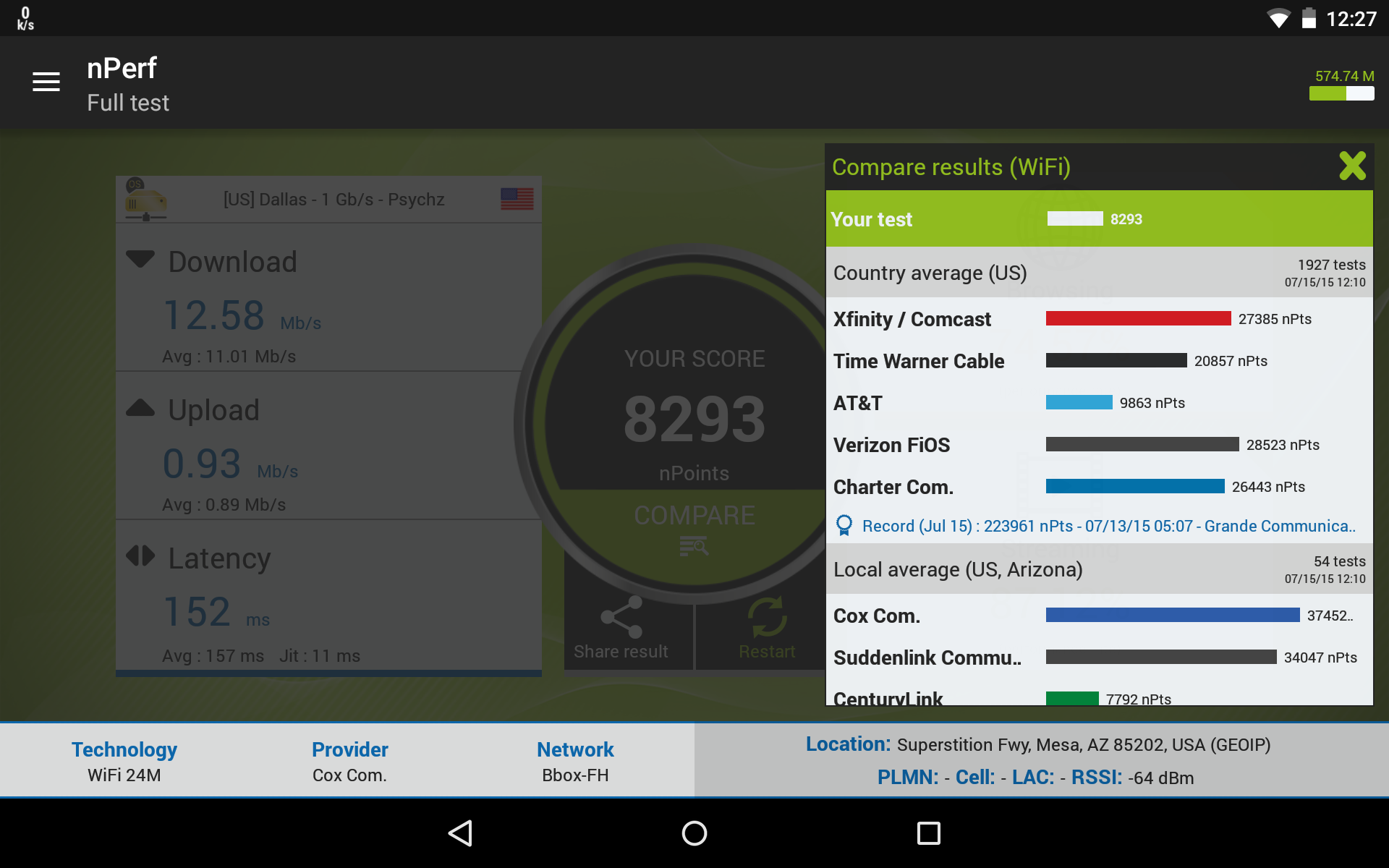Comparison tool: Compare your results with those from other users and for each service provider using a real-time barometer.