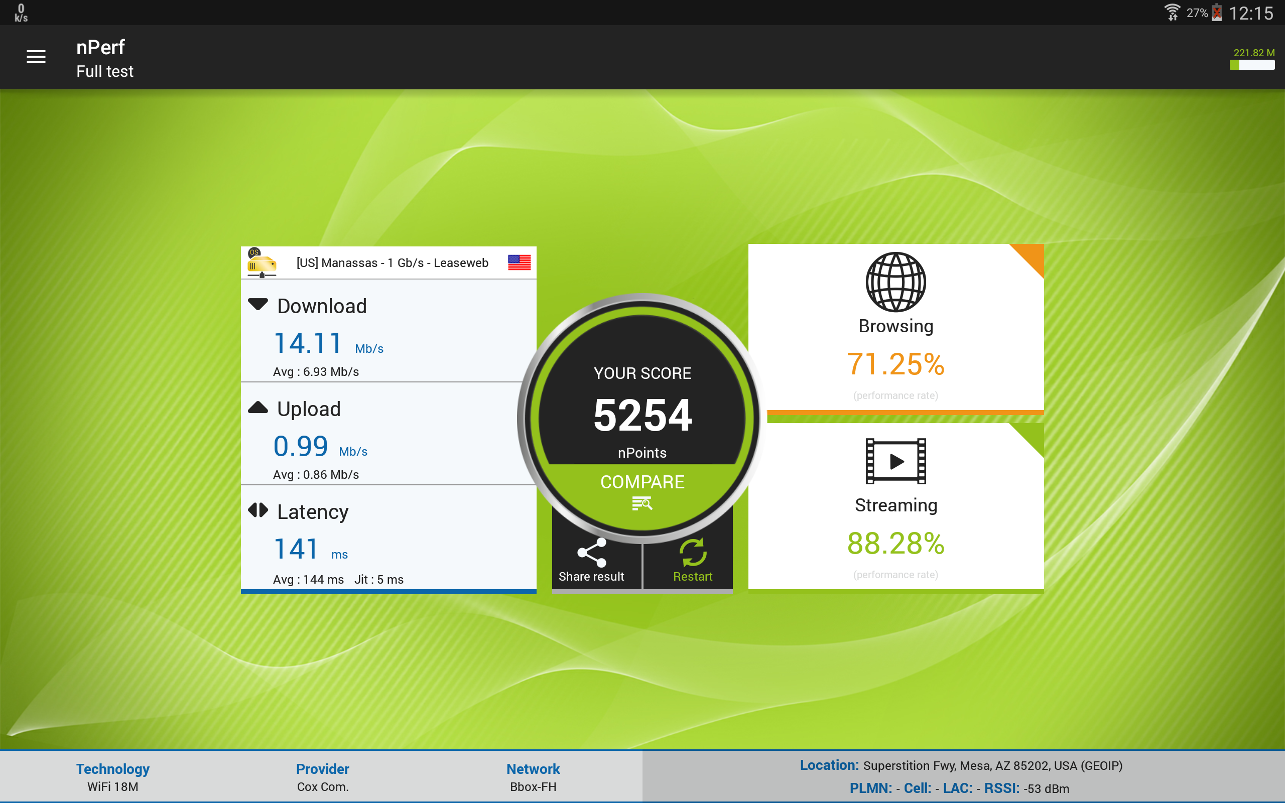 Your results are Stored in a hiStory along with test locations displayed on a map. Easily share outcomes on Social media using nPerf's shareable Images that summarize your test effectively. Personalize your app experience by changing the background Theme through the Settings menu.