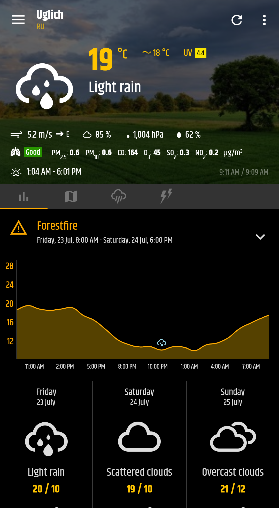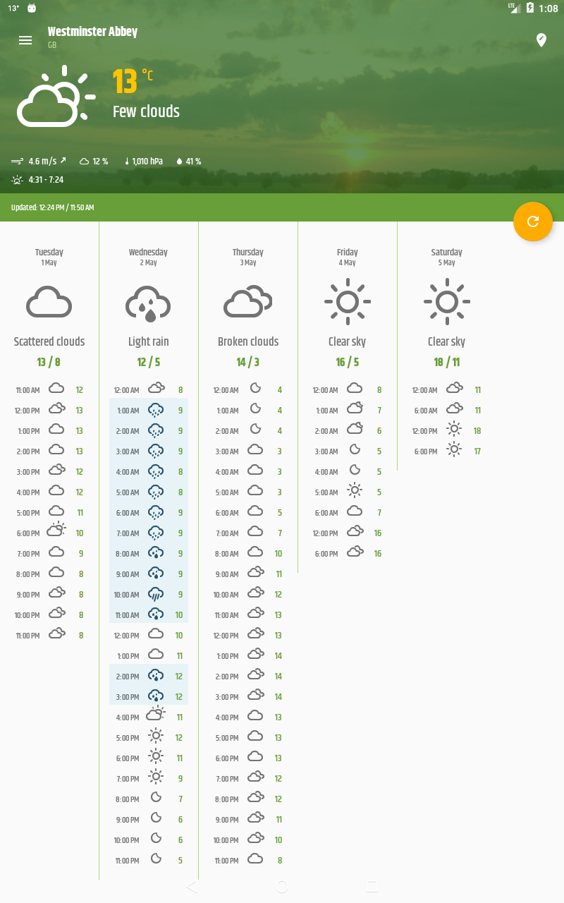 With this application, you will gain access to detailed and precise information about temperature, precipitation, humidity, and wind levels. The vivid, easy-to-read icons displayed on your screen will allow you to quickly grasp how the weather is changing right from your Android device. Not only does this app provide essential weather details, but it also integrates a clock feature, informing you of the current time in your current location or anywhere else of interest.