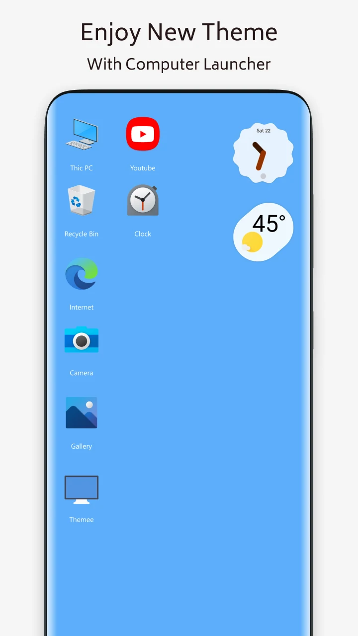 The Win 10 Theme for Computer Launcher stands out as the premier theme pack for Windows launcher and computer-like styled phones. It's designed specifically to give your mobile device the likeness of a Win 10 themed smartphone. Based on contemporary design trends, this theme pack is now readily available for free downloading. Its icon pack aligns perfectly with desktop tile layouts, ensuring your Android phone or tablet achieves a modern look.