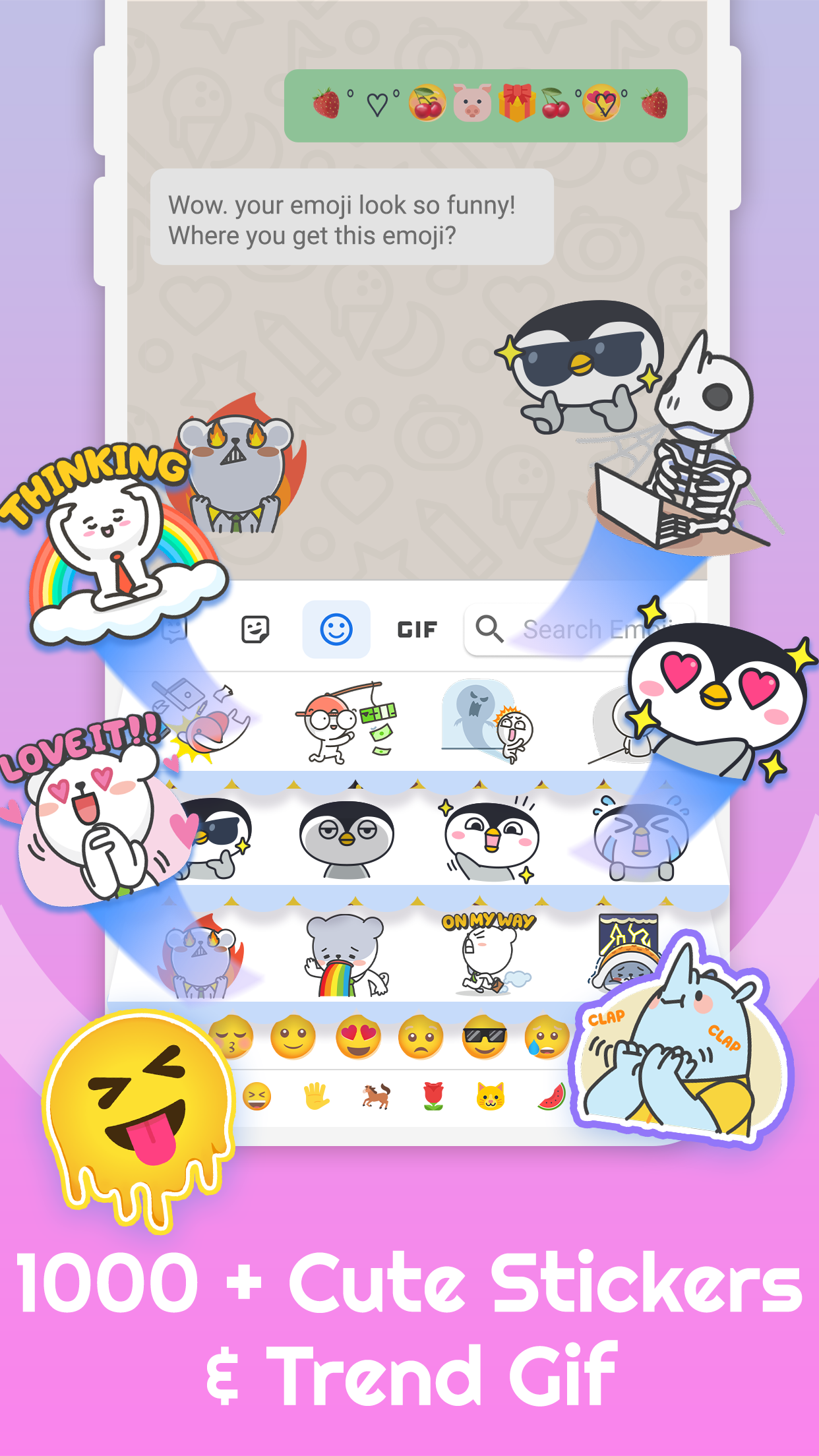 Quickly send 3000+ Emojis, Emoticons, Free Stickers, Emoji Art, Text Art, Symbols, and GIFs with ease using the Emoji Keyboard.