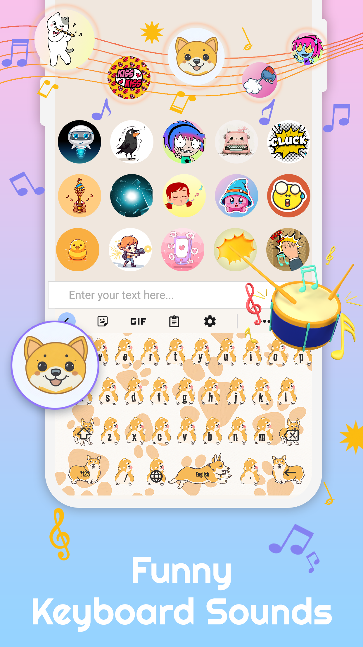 - Engage in DIY customization featuring tailored keyboard buttons, colors, fonts, tapping effects, and sounds (such as piano, guitar, and dog barking) to jazz up your emoji keyboard.