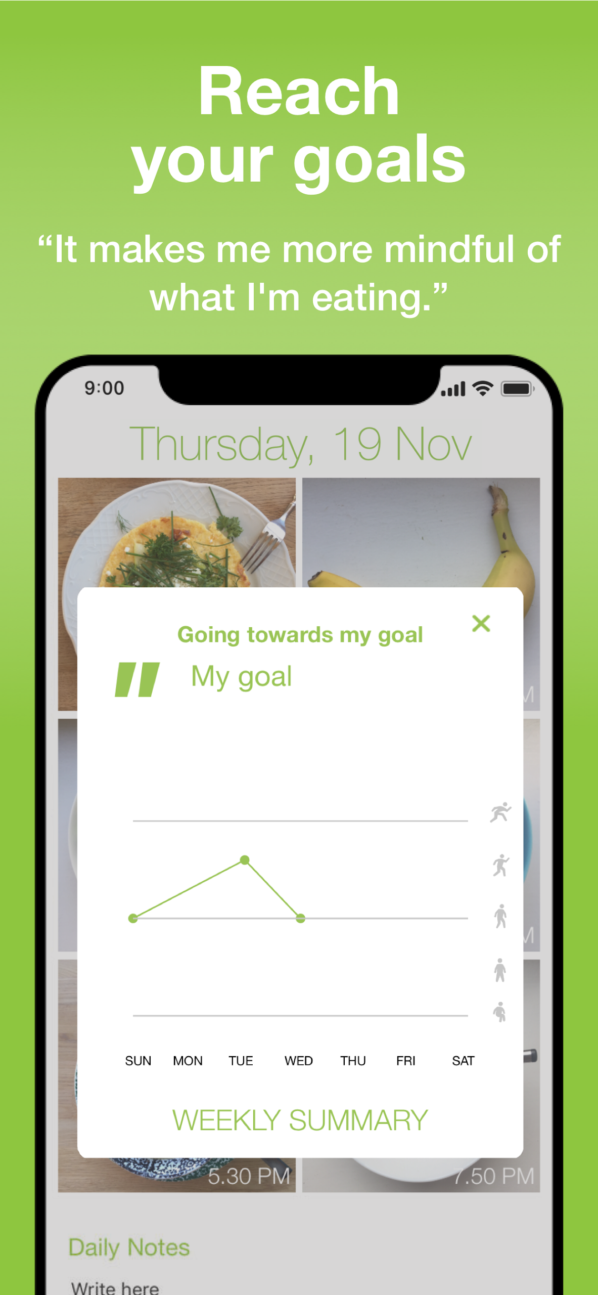 Whether your goals are to improve health, boost energy, feel happier, or master mindful eating, the Food Diary See How You Eat app empowers you to achieve success. It's the simplest approach to track meals and maintain a regular eating routine!