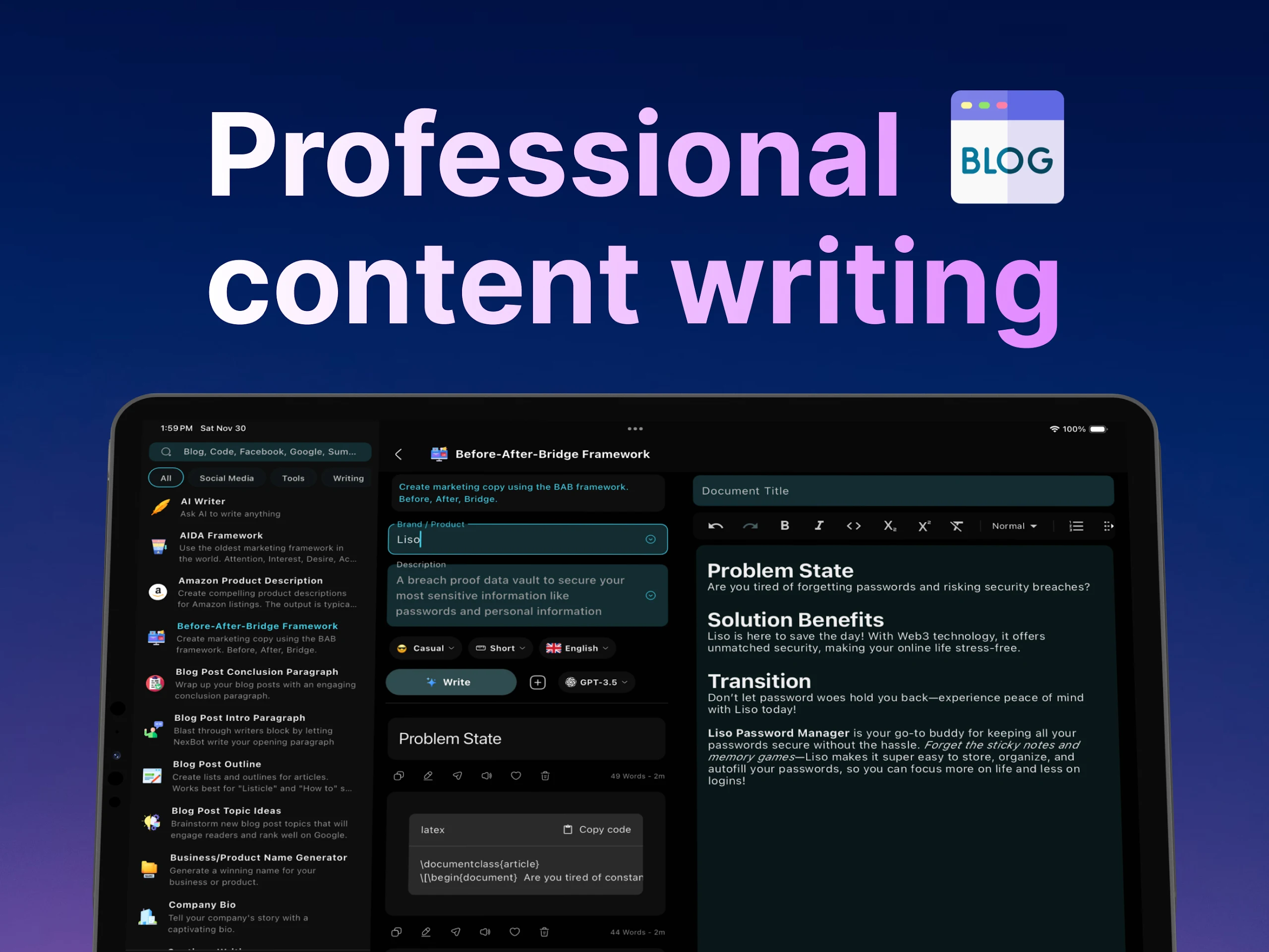 Structured Frameworks: As a content creator, you're likely familiar with various writing frameworks. Popular structures like AIDA and PSA are crucial in delivering effective messages. The application updates these frameworks regularly, providing various writing structures for users. With such a handy tool at your disposal, you can save valuable time and focus on other important tasks.