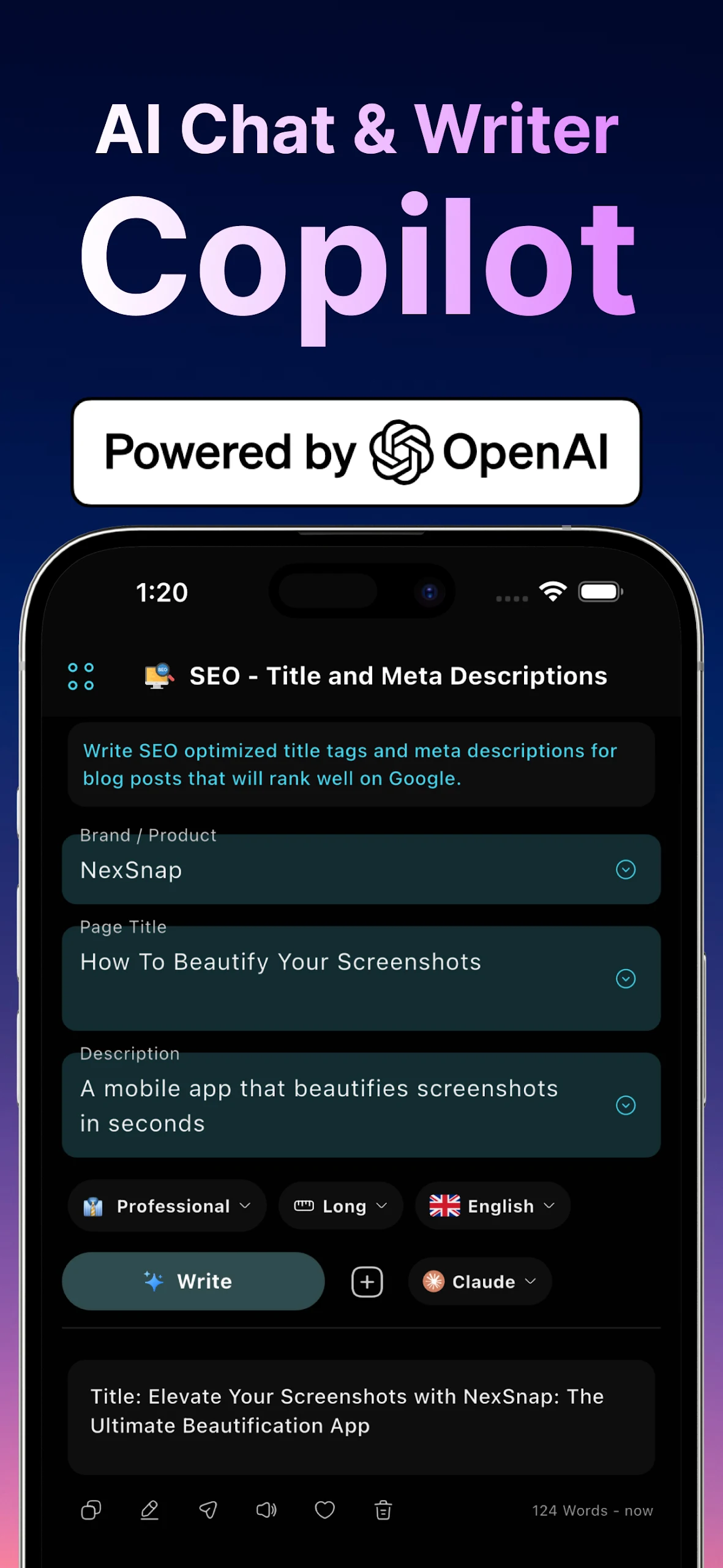 Apart from generating new text, AI Writer Copilot excels at editing and optimizing pre-existing content. What does this entail? The application intelligently identifies grammar, spelling, and complex sentence structures in the text provided. If you wish to enhance the professionalism of your writing, the AI suggests alternative styles, making it more fluid and engaging. If you're hesitant about your writing skills, AI Writer Copilot is undoubtedly a must-have resource!