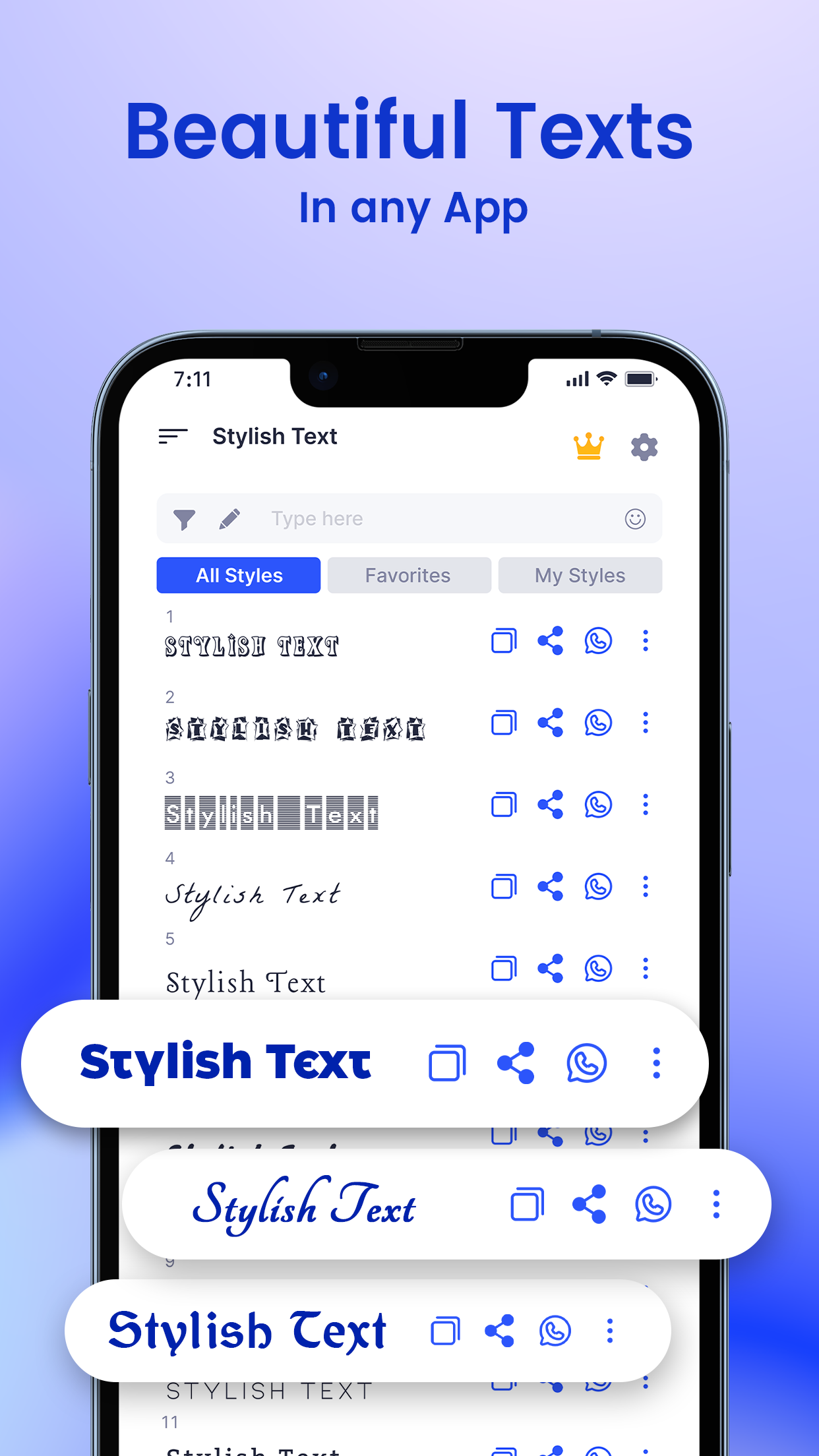 - Share your stylish text across various applications, including WhatsApp, Instagram, Messenger, and more.