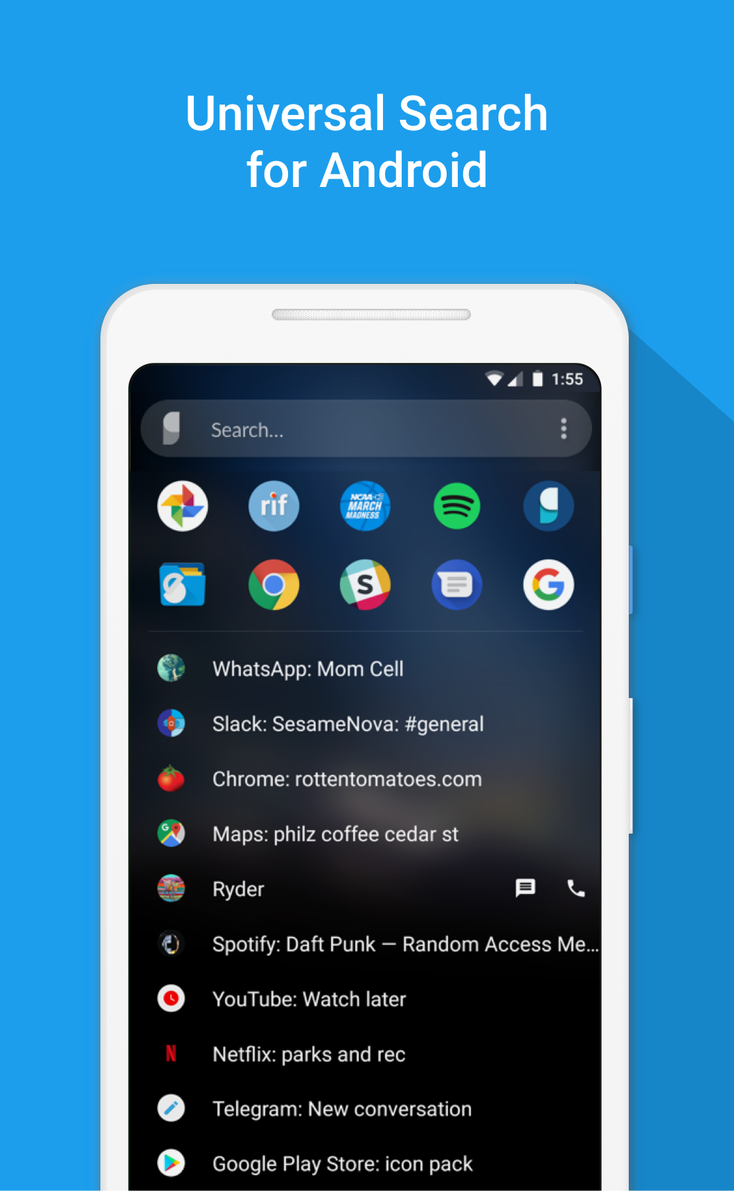 • Efficient and fast search capability Designed for quick access—generally in just 1 or 2 taps. For instance, typing “S” followed by “B” will prioritize results like “Spotify: The Beatles.” After learning your frequently used terms, next time simply typing “S” may suffice.