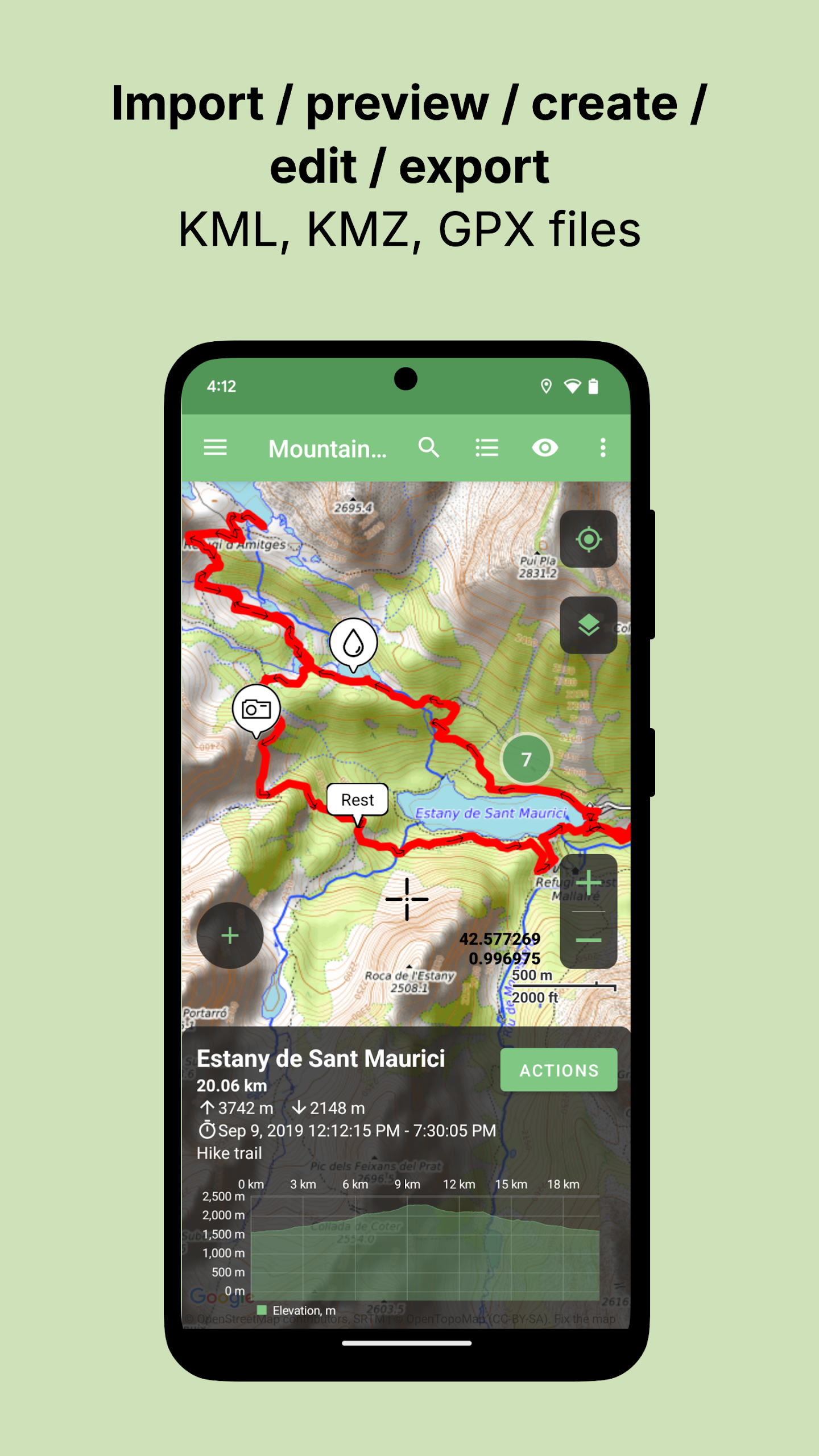 - Import tracks, routes, and waypoints from GPX, KML, and KMZ files (selectively import what you need without any hassle).