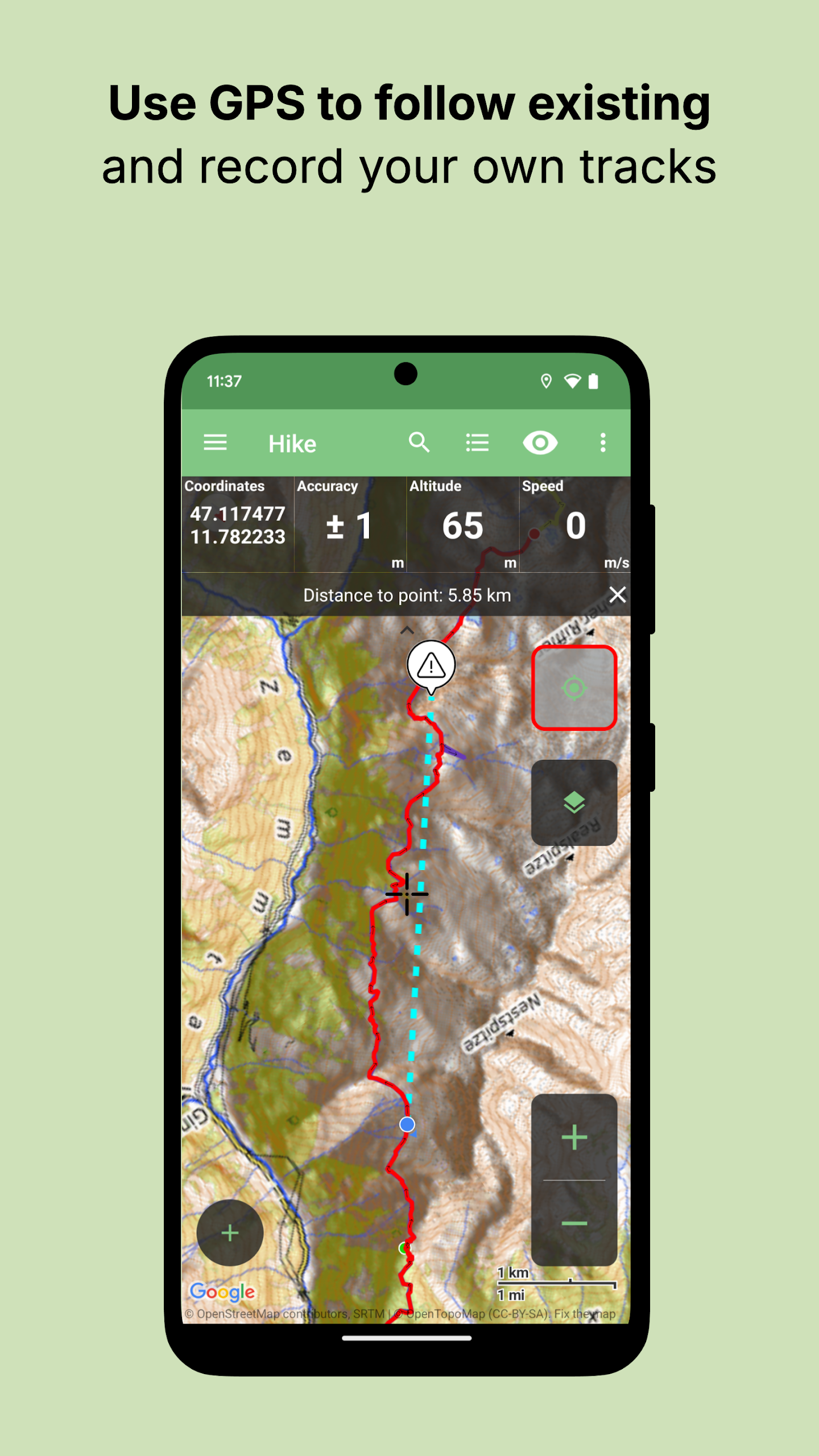- Follow GPS position continuously by adjusting the map view accordingly.