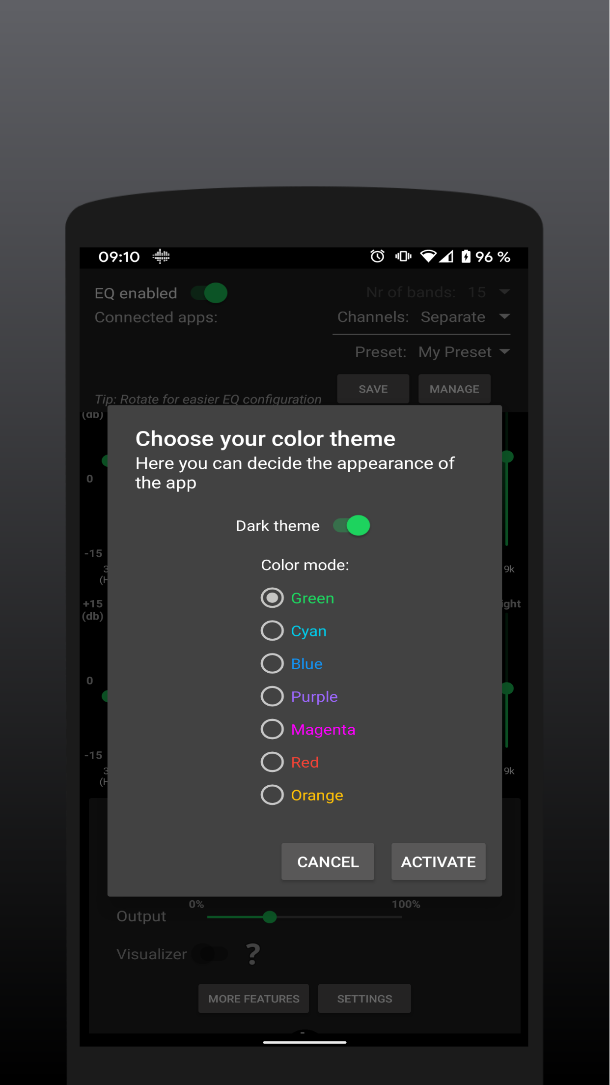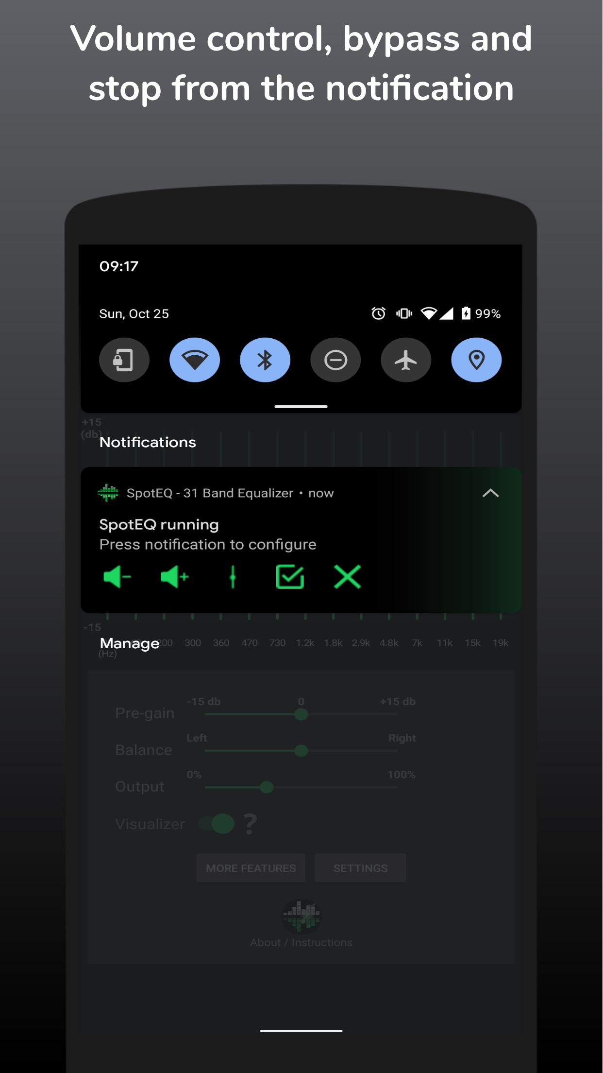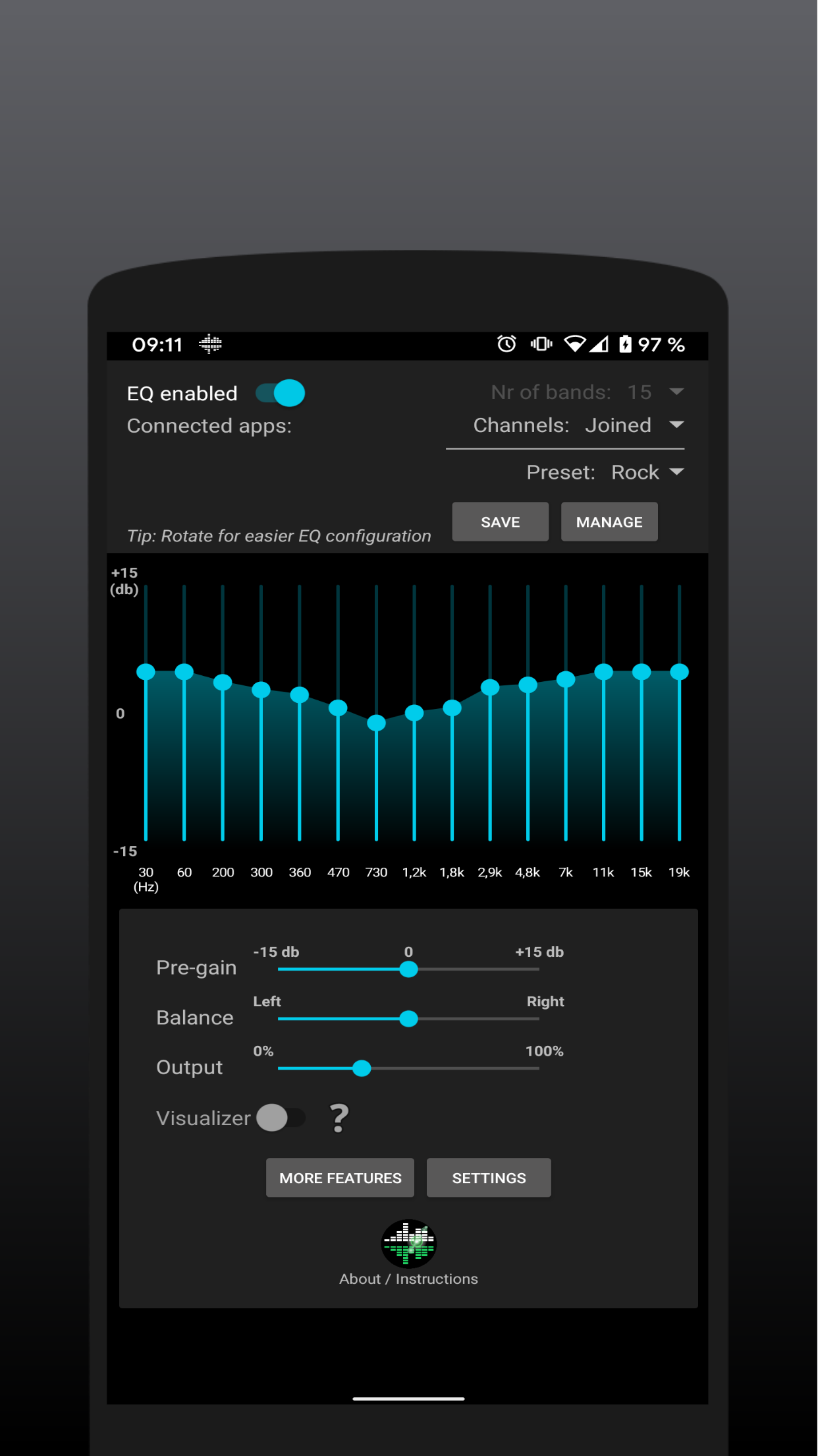 Experience music through your preferred player with high levels of customization enabled by a sophisticated 15 band equalizer, diverse sound presets, and options for balance and pre-gain volume control.