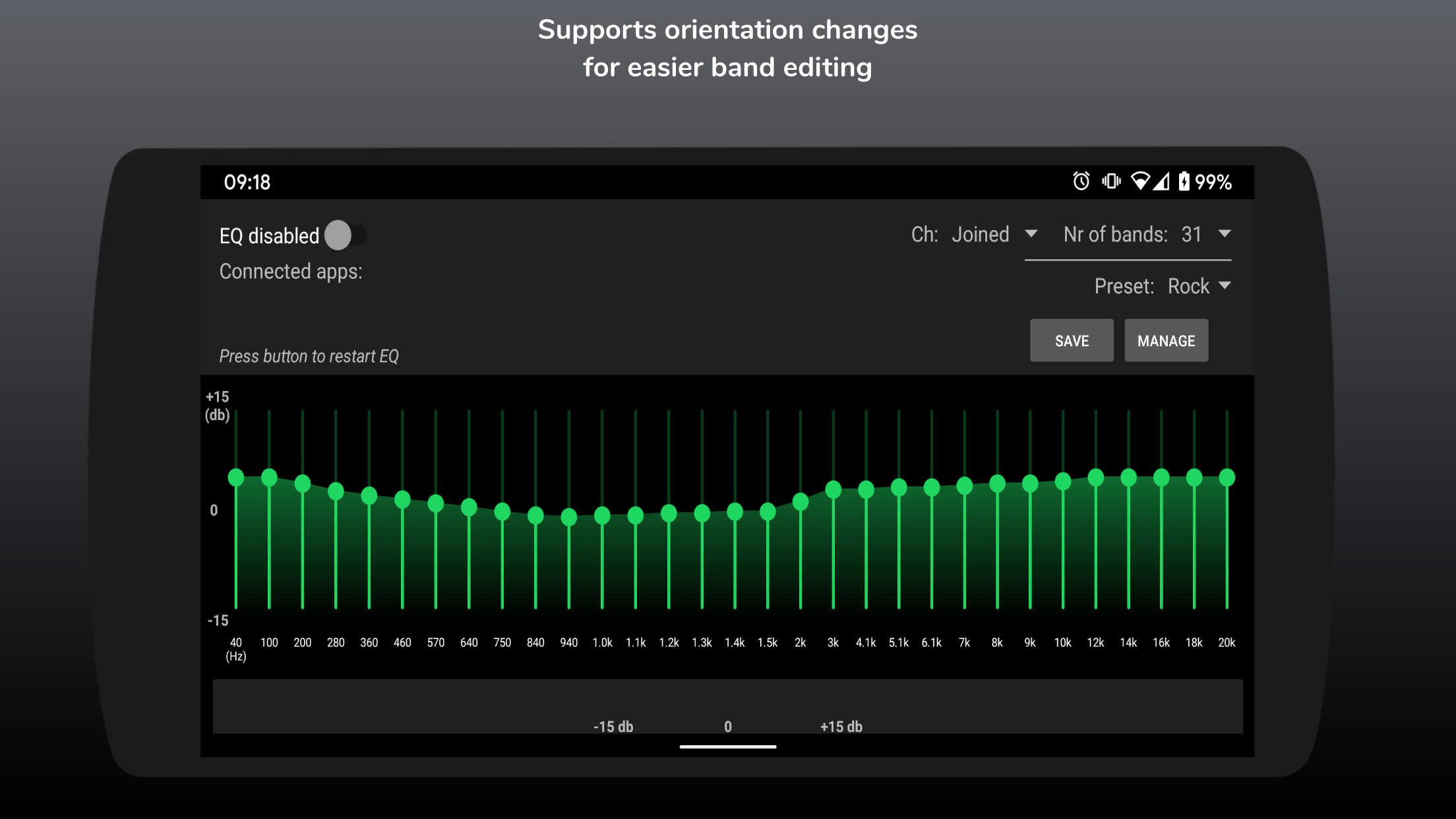 Be cautious that prolonged exposure to elevated volume levels can lead to hearing damage. Extra Care is advised when utilizing earphones in conjunction with this equalizer. Additionally, loud audio may pose a risk to your device or speakers. This app is made available as-is without Warranties, and you assume all risks associated with its use.