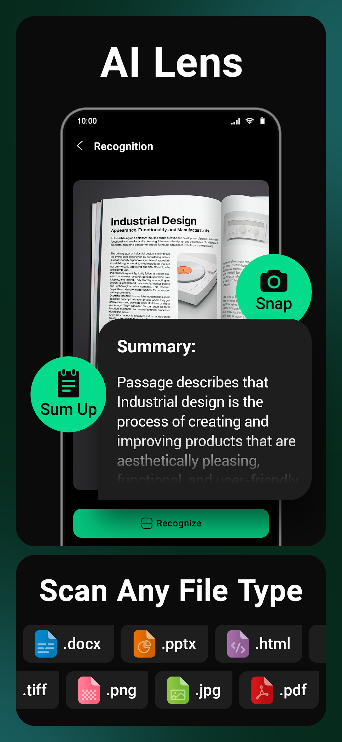 Leveraging AI technologies like ChatGPT and GPT-4o, our app can adeptly summarize lengthy texts, web pages, and PDFs.