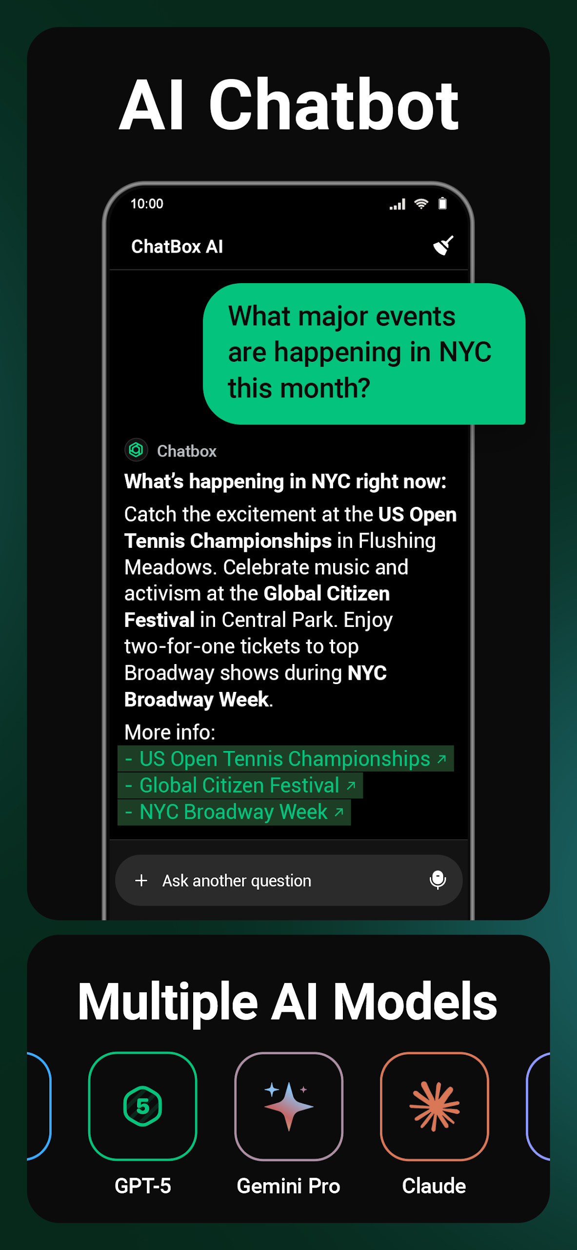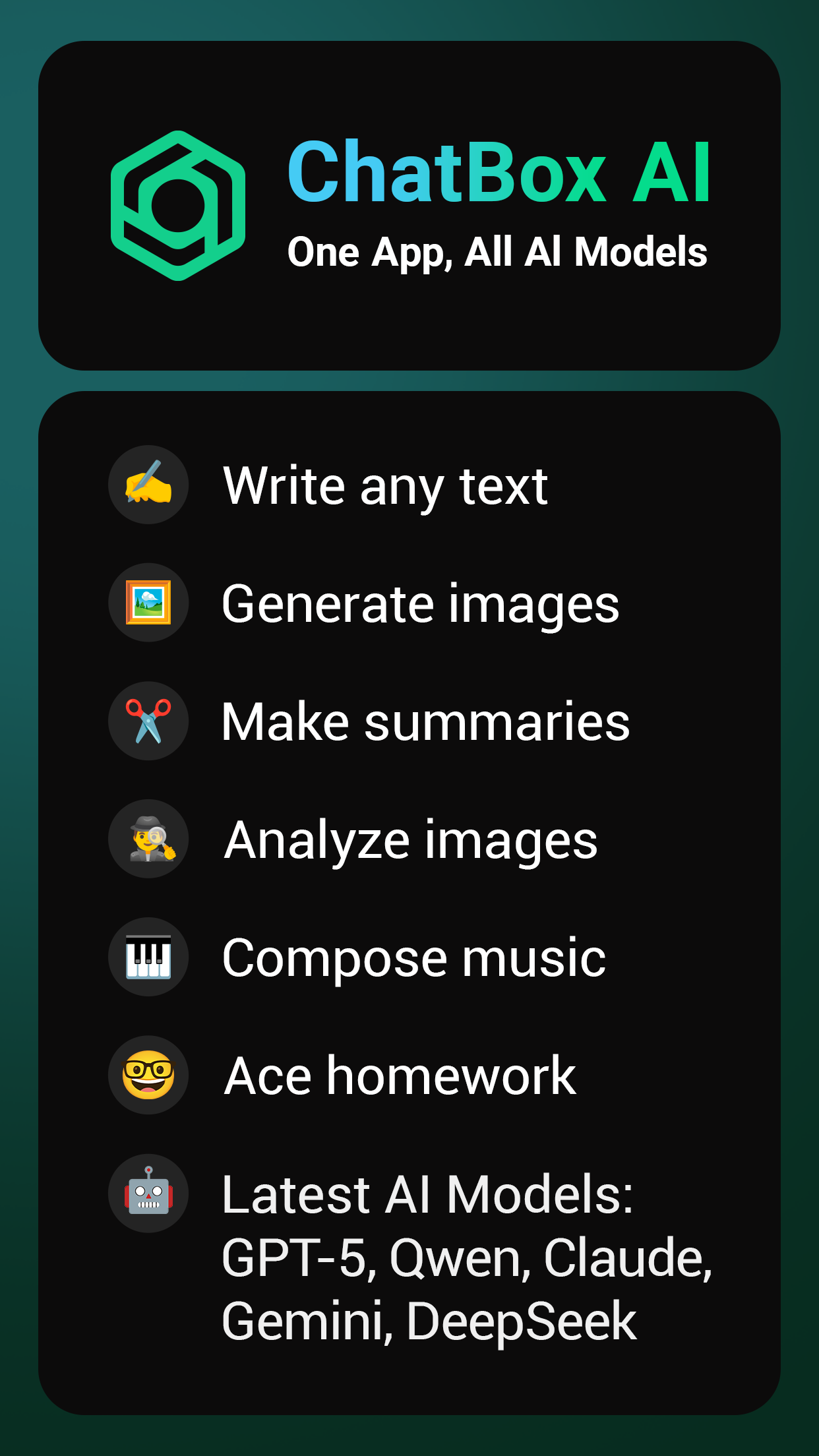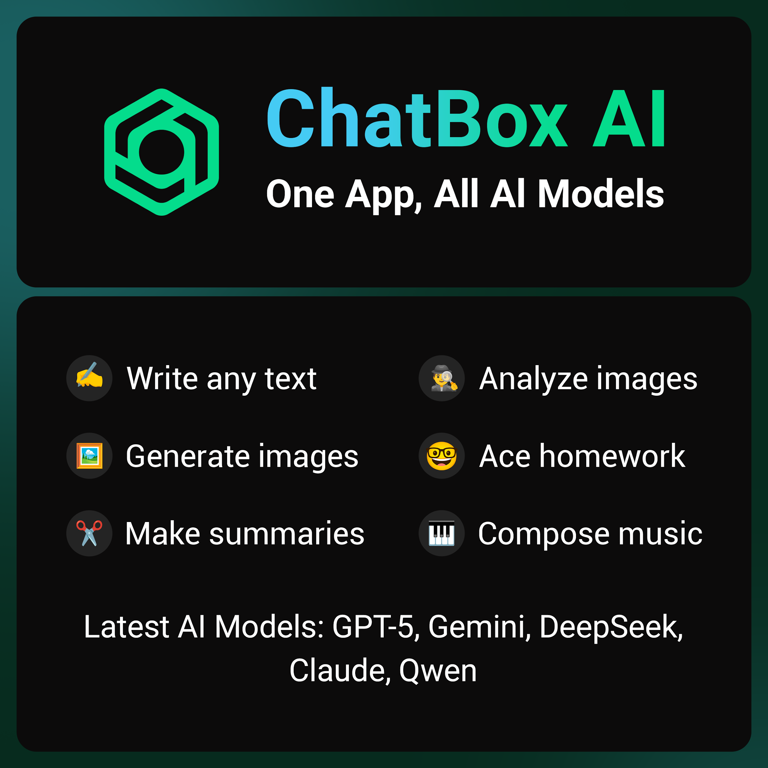 ChatBox employs the latest AI advancements to provide outstanding assistance. Whether addressing intricate inquiries, generating images, or delivering thorough explanations, this AI Chatbot—driven by ChatGPT, GPT-4o, Gemini, and Claude—serves as a reliable Companion across diverse tasks.