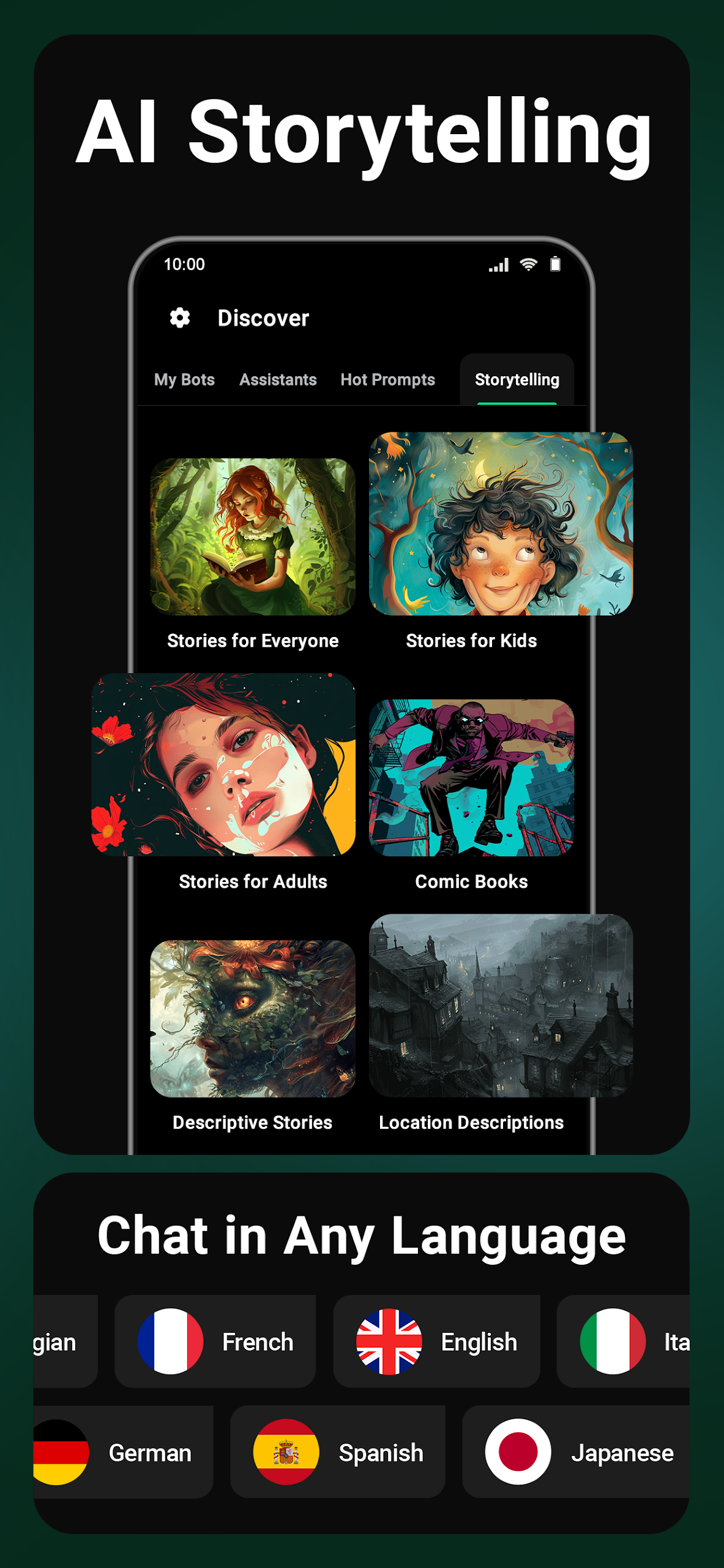 An AI-driven narrative creator, utilizing the latest brainpower from GPT-4 and GPT-4o, can construct illustrated tales for children and adults, comics, descriptive passages, and much more.