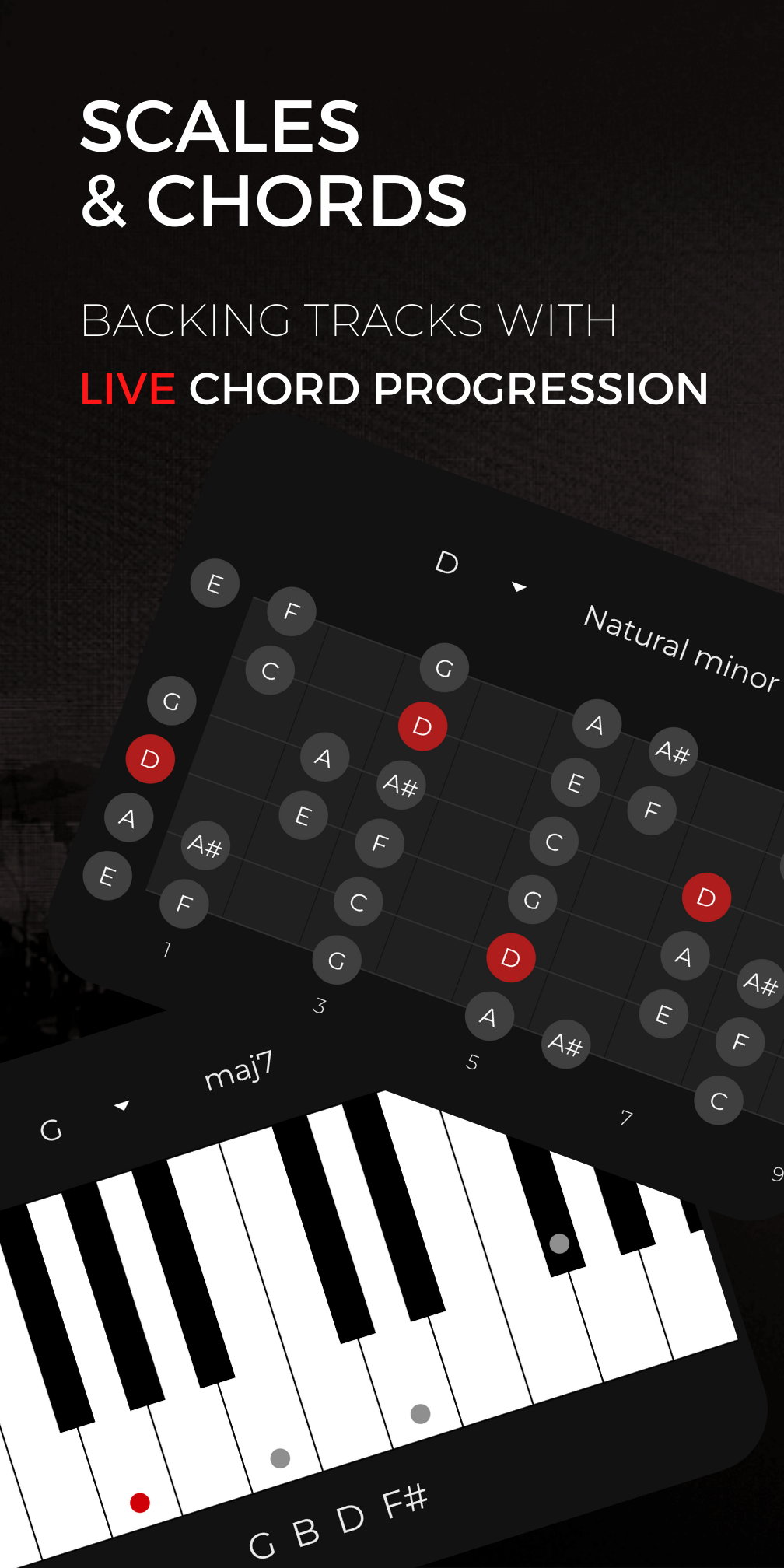 - Access an array of accompAniment tracks (improvisational tracks) spanning numerous genres while watching their chord progressions in real-time as you play! A limited selection of tracks is available for FREE, while the rest can be unlocked by upgrading to the Premium version.