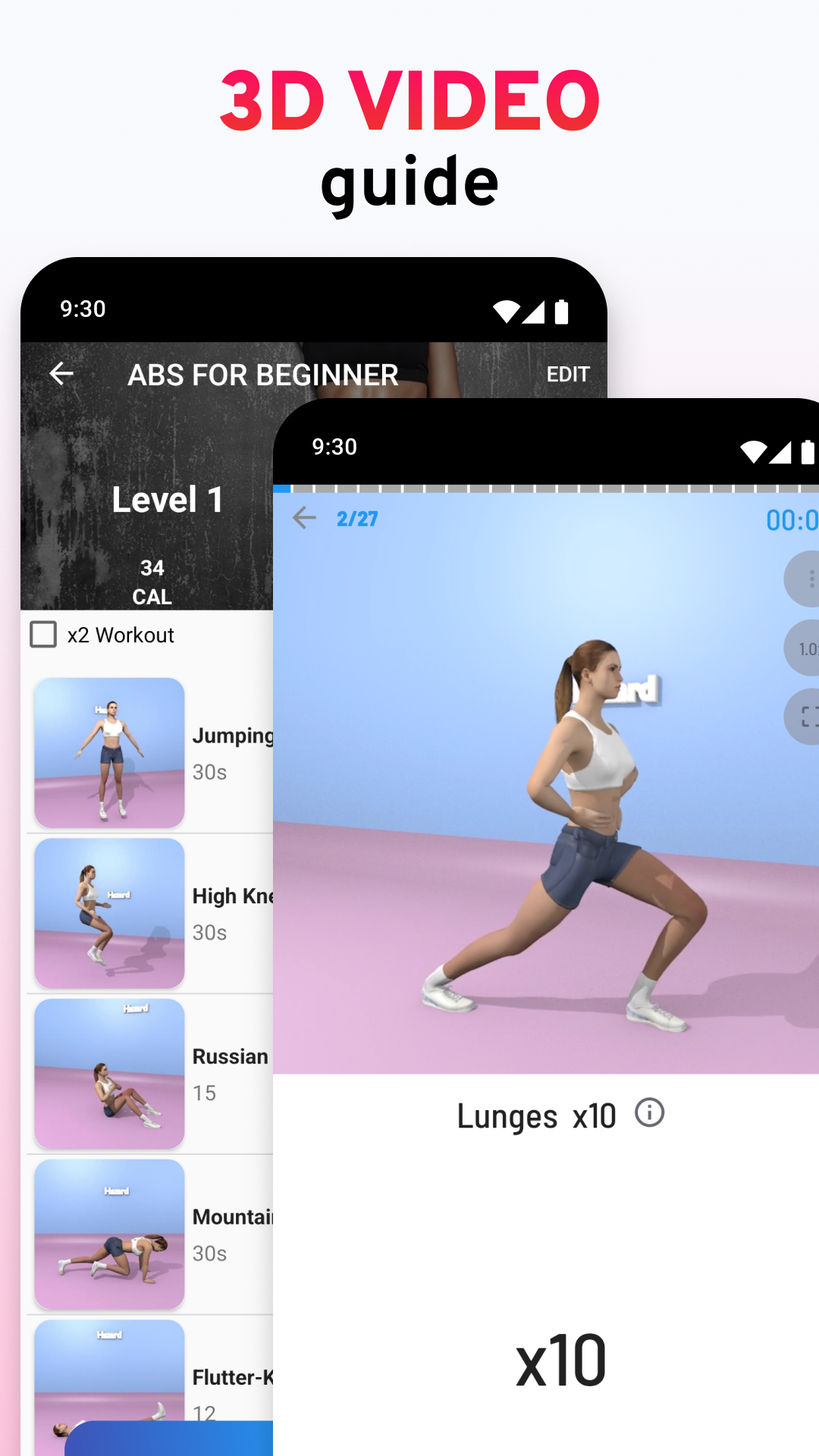 - Daily workouts for abs, legs, and complete body workouts ranging from beginner to advanced levels.