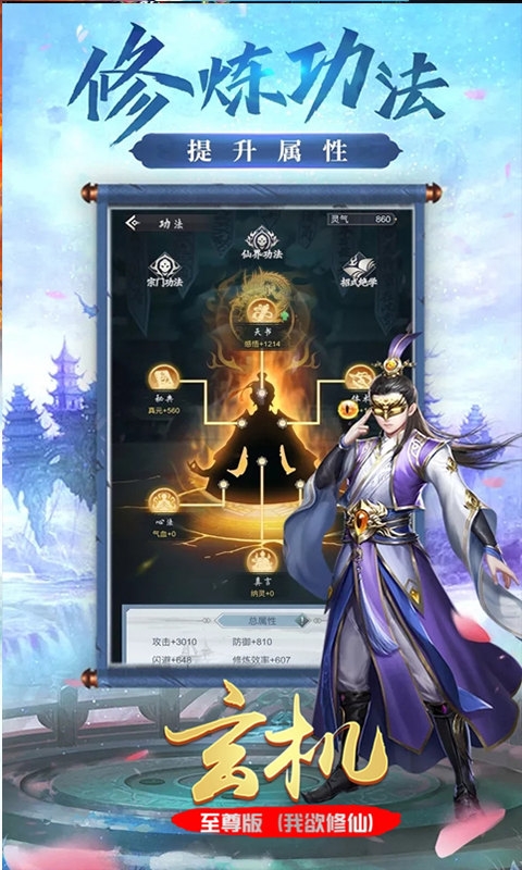 玄机至尊版手游官方版是唯美的修真战斗游戏,进入大型的江湖世界,自由的修炼,感受炫酷特效,成就巅峰实力,一起主宰仙界!加入精彩的仙魔之战,与众多的帮派竞技,争夺荣耀,最终一统三界!邂逅一些女神,并肩作战,一起执剑天涯,逍遥三界,成为仙界至尊!