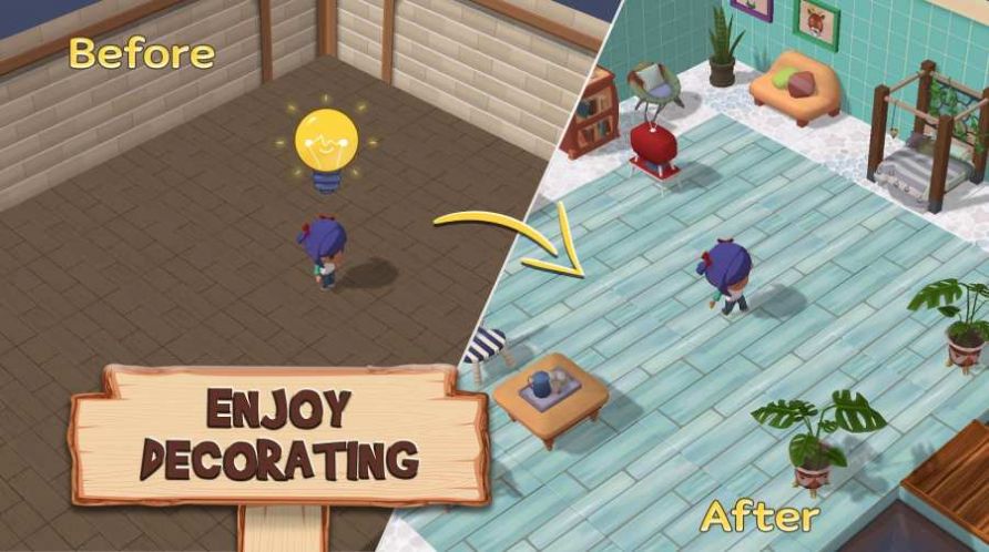 可以在这里进行大面积的种植、建造房屋,钓鱼等,当我们来到这个可爱的世界里的时候,玩家可以种植属于自己的作物,并且可以尝到可口的水果,满地图都是小小人在跑来跑去。