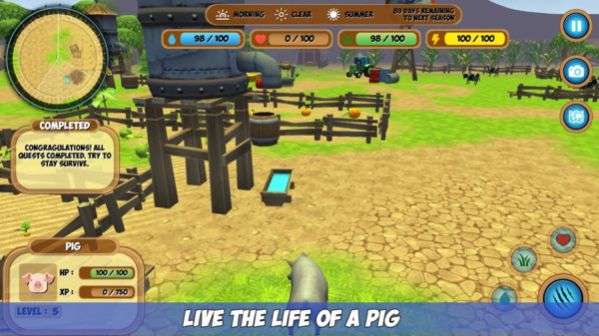 您需要保护自己,寻找食物,找水并成长。您将有一个家庭,也必须保护他们。从出生到死亡都像猪一样玩,