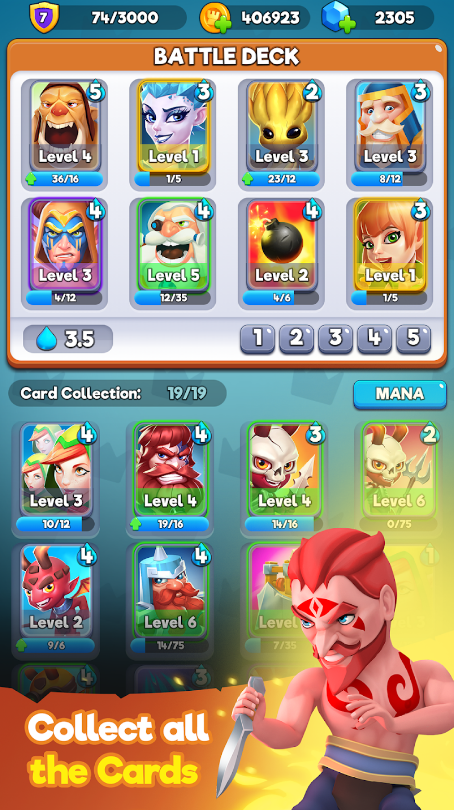One of the unique features of this game is the ability to upgrade and equip your Hero with the best items, giving you an extra advantage over your opponents. You can collect powerful bonuses to help you build your ultimate deck, and use your strategic skills to achieve victory.
