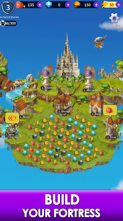 In this game, Players start by Building a fortress where they can merge resources and Train heroes. As they progress, they collect various resources such as gold, gems, and crystals, which can be merged together to create higher value resources. The higher value resources can then be used to strengthen their fortress and heroes.