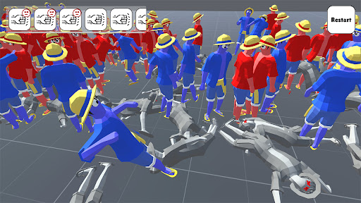 Gameplay is fast-paced and engaging, with players using a set of buttons to arrange their stickmen armies into formations before the battle begins. Once the Action kicks off, the red and blue teams go head-to-head in a comical display of Stickman mayhem, complete with sound effects and animations that are sure to keep players entertained.
