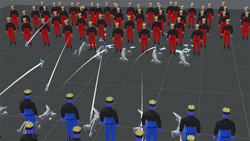 Red and Blue: Battle simulator also showcases several game modes, allowing players to either control their characters directly or play as a third-person observer. The game's graphics have been improved, with lush environments and smooth animations that make for a visually-appealing experience.
