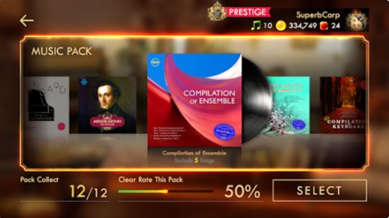 In addition to the league mode, PIANISTA also offers an Inspirational Tour Music Pack mode, featuring hand-curated music packs that range from "The Spring of Sound" to "Compilation of Ensemble." Each stage of these music packs is Designed to take you on an inspirational journey and become a virtuoso by clearing them all.