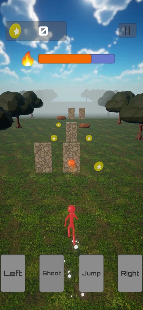 Red man, run! The gaming experience is very unique, combining the simple operation of Parkour games with the thrill of shooting games. Players need to respond to constantly emerging obstacles and enemies through precise operations and quick reActions. During the running process, the red person can move to the left and right, jump, squat and move, and shoot fireballs forWard or diagonally. These operations require players to have a certain level of reaction speed and coordination ability.